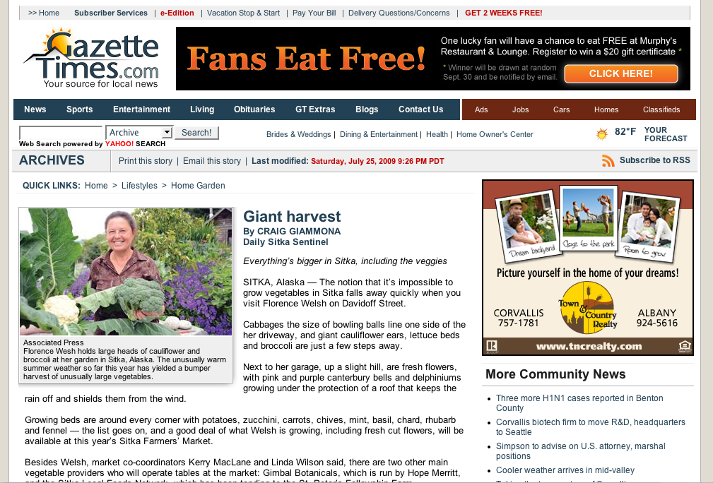 Picture 2 Published August 24, 2009 at 1009 × 684 in • Sitka Farmers Market on the Farm-To-Consumer Legal Defense Fund, Corvallis (Ore.) Gazette-Times sites ← Previous Screenshot of the Sitka Farmers Market article in the Gazette-Times of Corvallis, Ore. Screenshot of the Sitka Farmers Market article in the Gazette-Times of Corvallis, Ore.