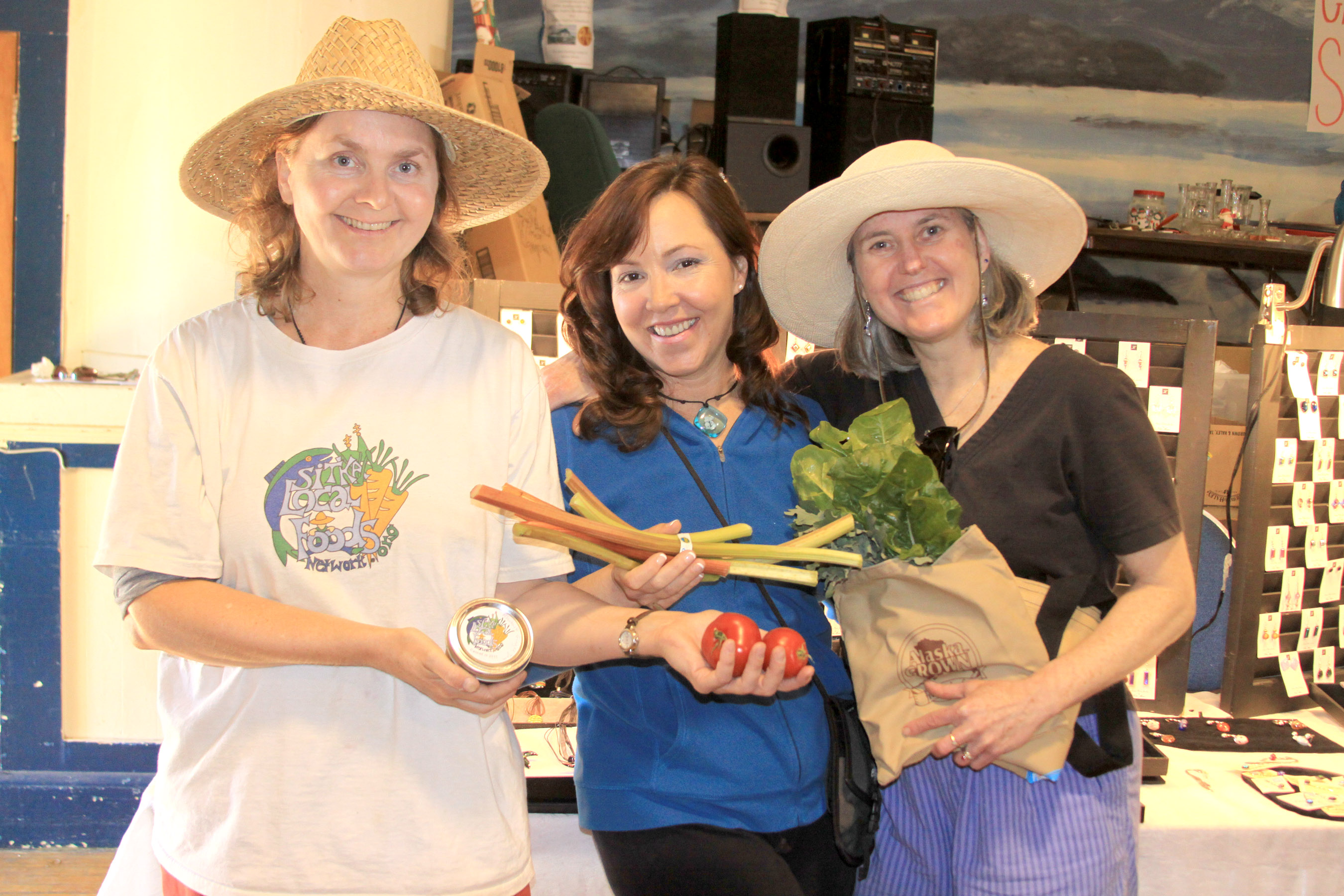 PHOTO COURTESY OF SITKA LOCAL FOODS NETWORK Sitka Farmers Market representative and Sitka Conservation Society community sustainability organizer Tracy Gagnon, second from left, presents Sitka Spruce Catering owner Jeren Schmidt, third from left (with daughter Novah Lee Schmidt in backpack), with the table of the day award as Jeren's co-workers Tam Conatser, left, and Linda Bergdoll-Schmidt, right, watch. The table of the day award was for the second Sitka Farmers Market of the summer on Saturday, July 30, 2011, at the Alaska Native Brotherhood Hall in Sitka, Alaska. Sitka Spruce Catering uses locally grown veggies, herbs and other local products to create the food it provides through its catering operation. Jeren, Tam and Linda received a tote bag full of bread, veggies and other prizes from the market. The next Sitka Farmers Market is from 10 a.m. to 2 p.m. on Saturday, Aug. 13, 2011, at ANB Hall. To learn more about the Sitka Farmers Market and other Sitka Local Foods Network projects, go to http://www.sitkalocalfoodsnetwork.org/.