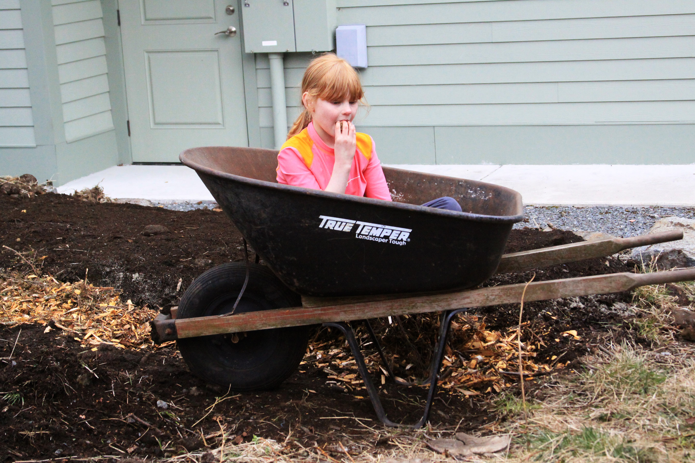 DarbyOsborneSitsInWheelbarrowAndEatsCookie Published April 16, 2012 at 2700 × 1800 in • St. Peter’s Fellowship Farm hosts second work party to prepare for spring planting and a summer of fresh veggies ← Previous