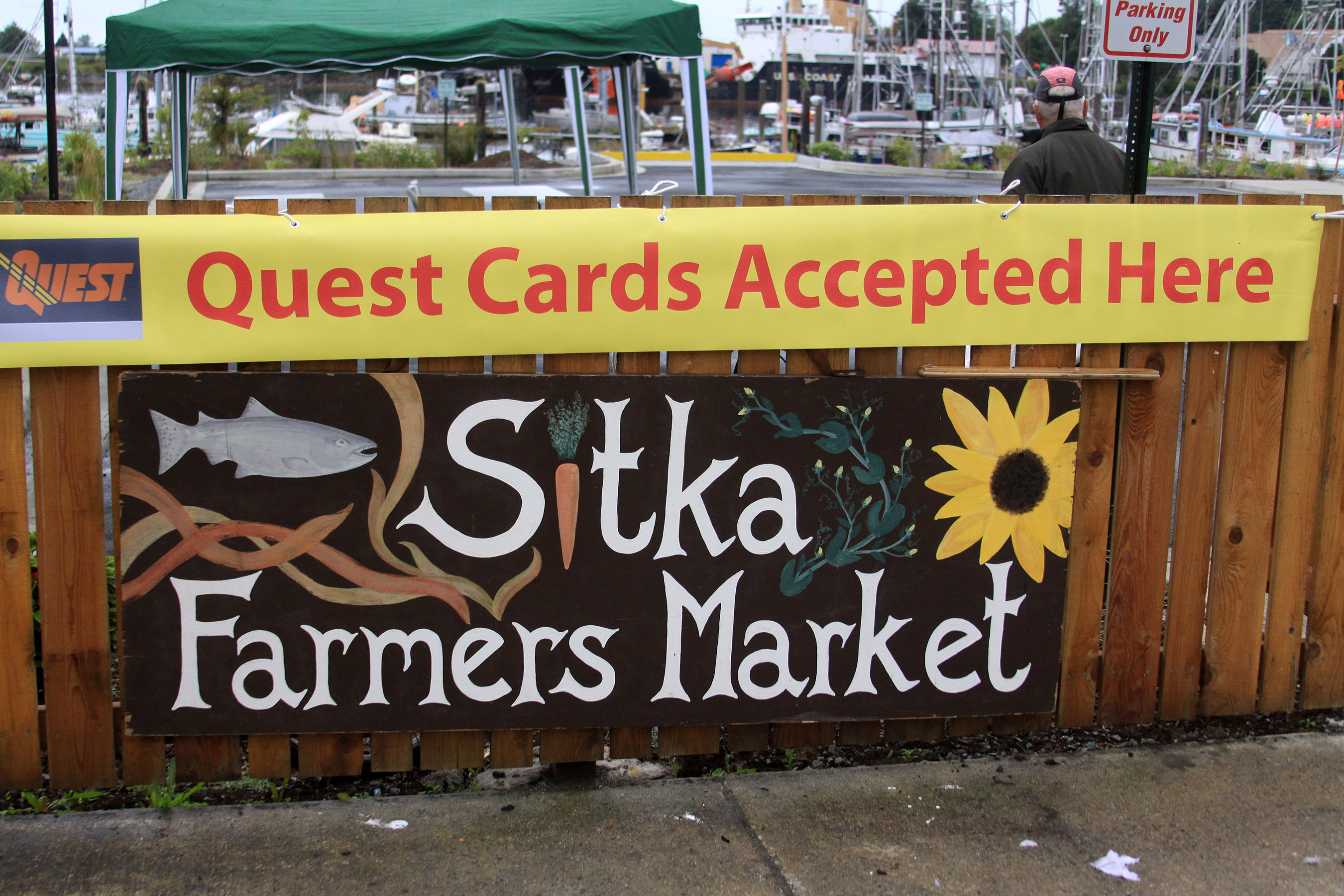 SitkaFarmersMarketSignQuestCard Published August 10, 2013 at 2700 × 1800 in • Scenes from the third Sitka Farmers Market of the season and the Sitka Seafood Festival ← Previous Next →