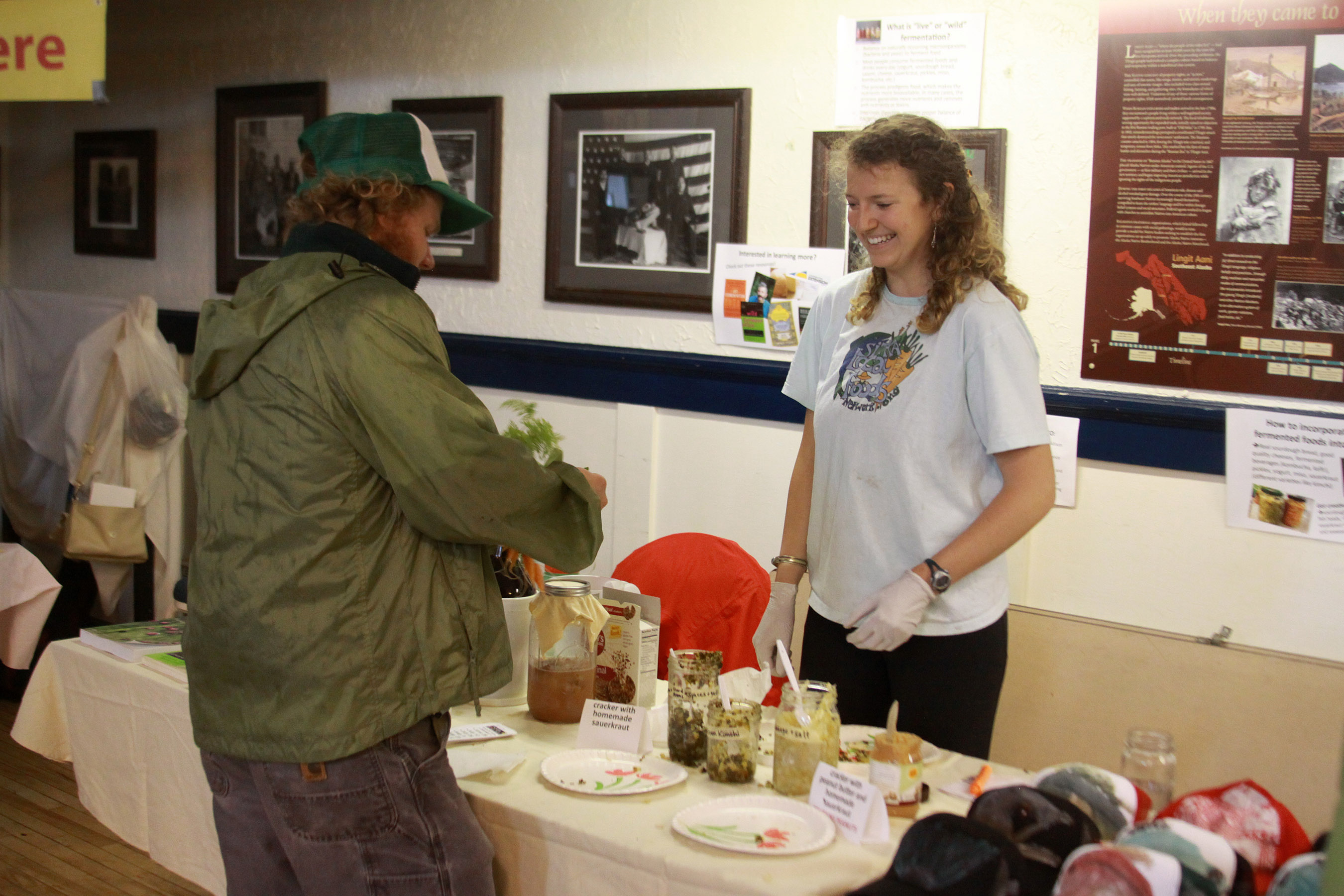 McLane Ritzel, the Sitka Local Foods Network’s 2014 summer Bulldogs on Baranof intern, hosts a fermentation demonstration during the Sitka Farmers Market.