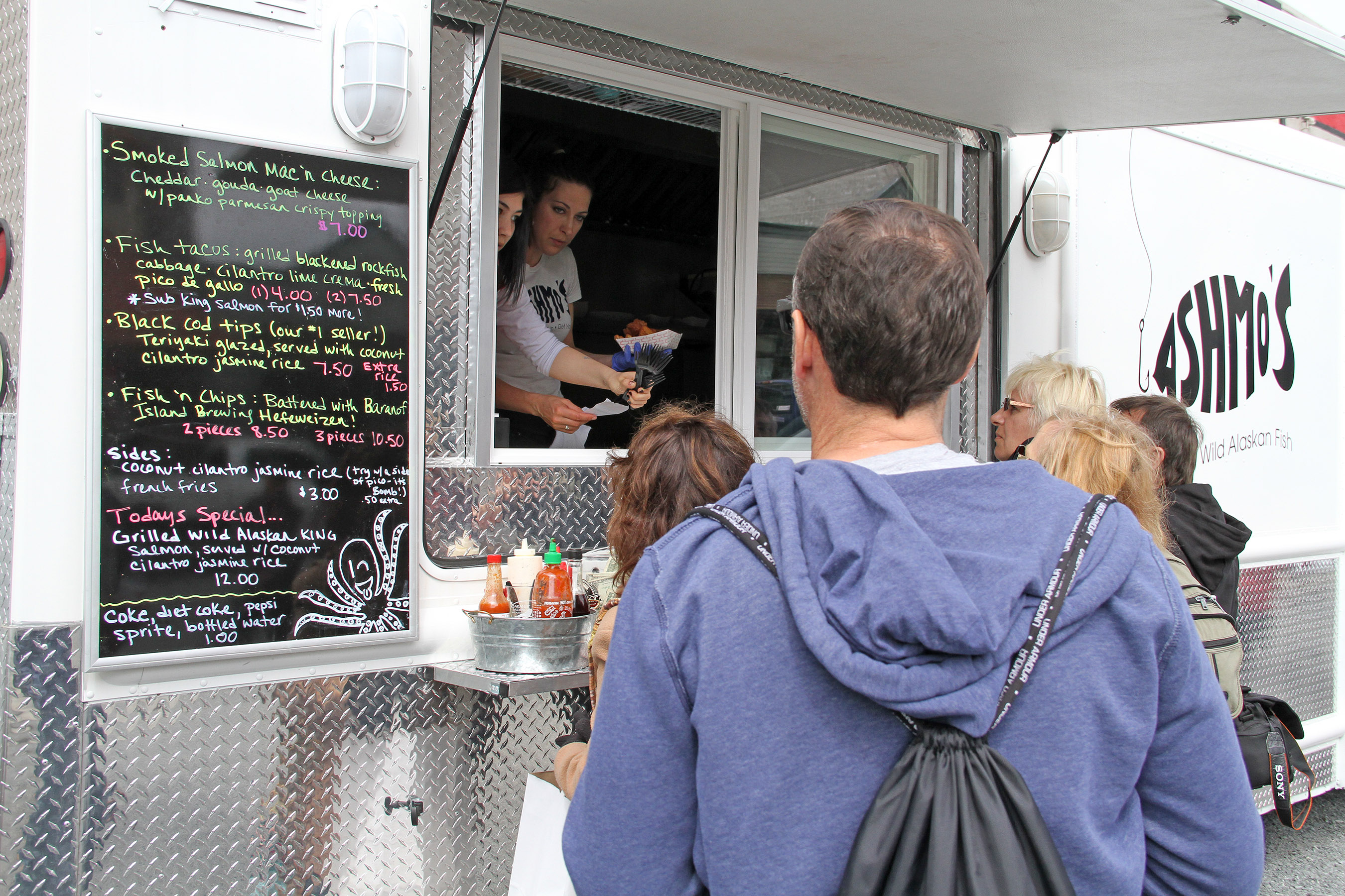 The most mobile of the new group of street food stands is Ashmo’s, a food truck owned by Ashley Moore specializing in Alaska seafood dishes. Ashmo’s has been parked out in front of the Coliseum movie theater on Lincoln Street for much of the summer. But the truck also has been available this summer at Baranof Island Brewing Company on Tuesday nights and for other special events (including the BIBCO community benefit night May 27 for the Sitka Local Foods Network), with occasional trips to the Old Sitka Docks, and by Eliason and New Thompson harbors.