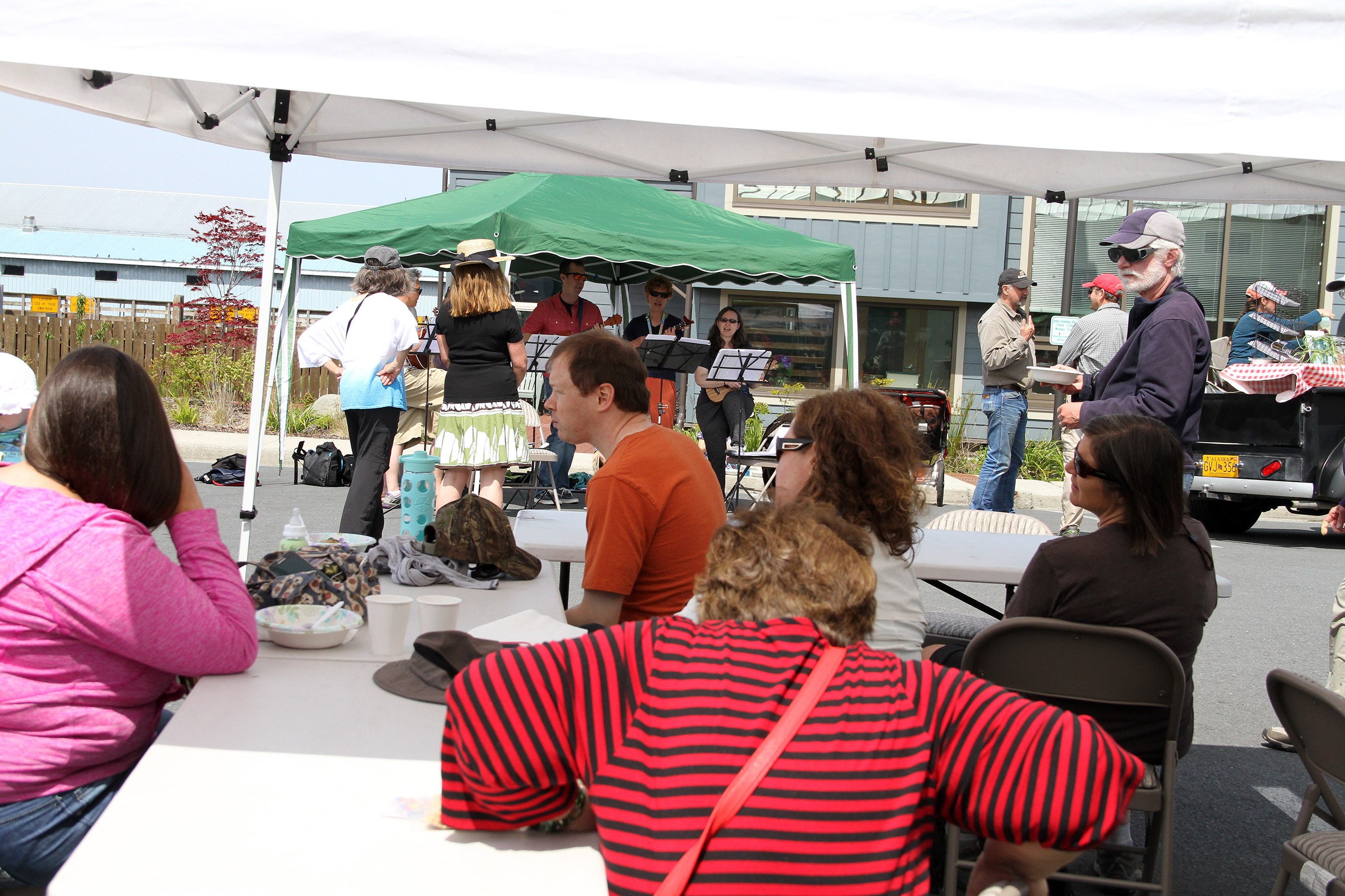 PeopleAtTablesWatchingUkulelePlayers Published July 10, 2015 at 2700 × 1800 in • Scenes from the first Sitka Farmers Market of the 2015 summer ← Previous Next →