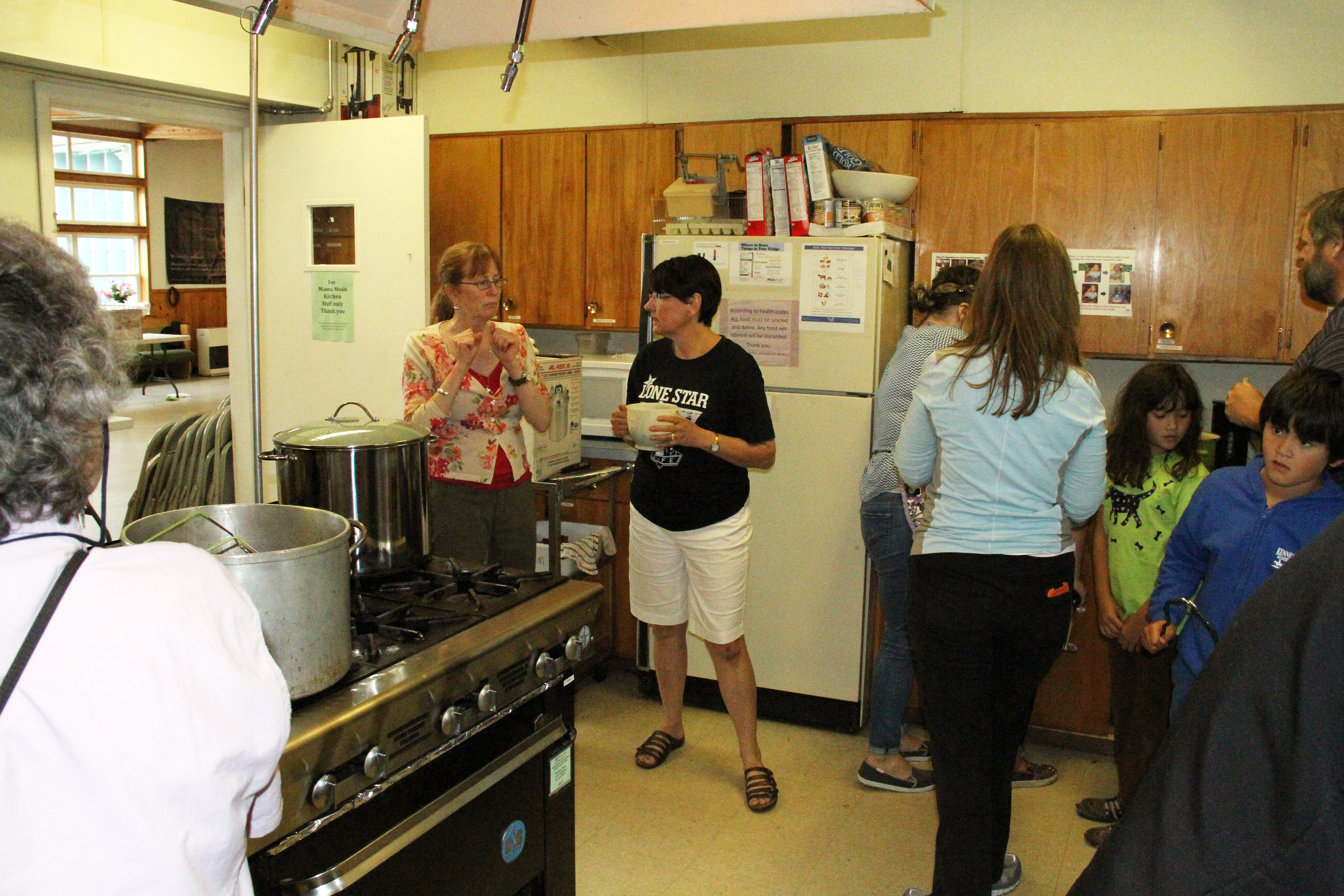 LeslieShallcrossGivesDirectionsToLisaMoore Published August 9, 2015 at 5184 × 3456 in • Scenes from a series of Sitka Seafood Festival food preservation classes at the Sitka Kitch ← Previous Next →