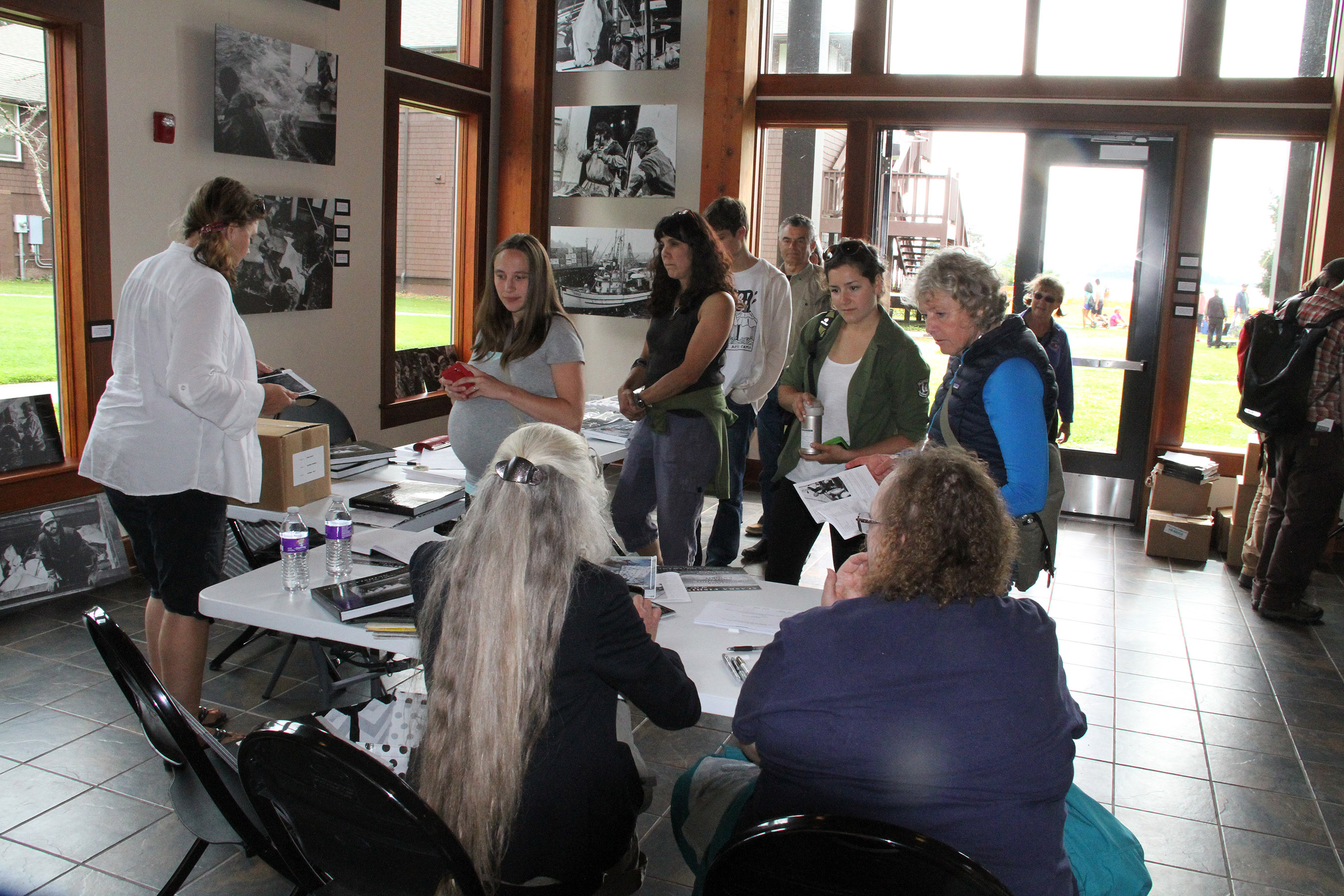 CrowdWaitingToBuyJanaSuchyBook Published August 9, 2015 at 2700 × 1800 in • Scenes from the 2015 Sitka Seafood Festival events held Saturday, Aug. 8 ← Previous Next →