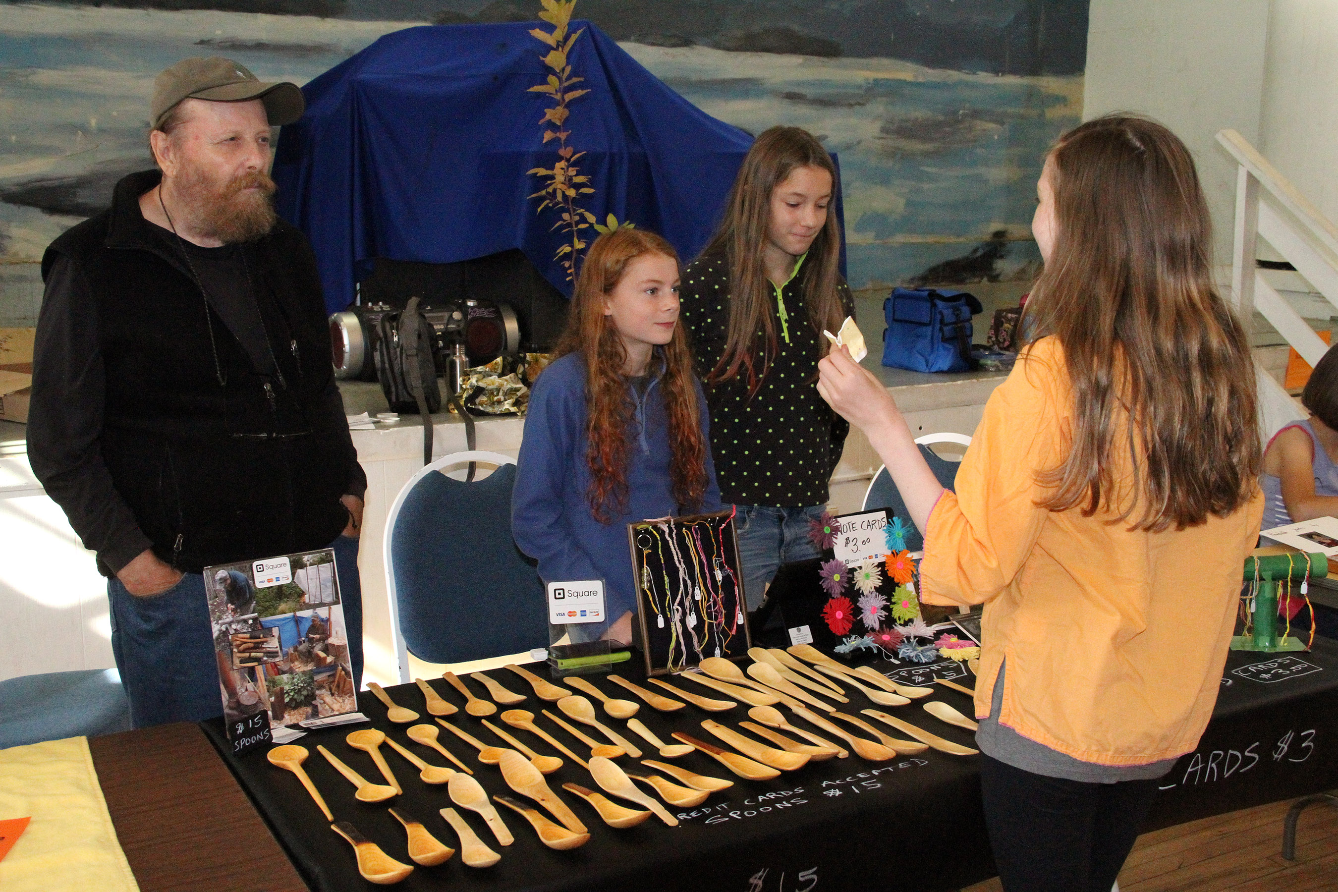 MikeMcCormickAndGranddaughtersSellWoodenSpoons Published August 16, 2015 at 2700 × 1800 in • Scenes from the fourth Sitka Farmers Market of the 2015 summer ← Previous Next →