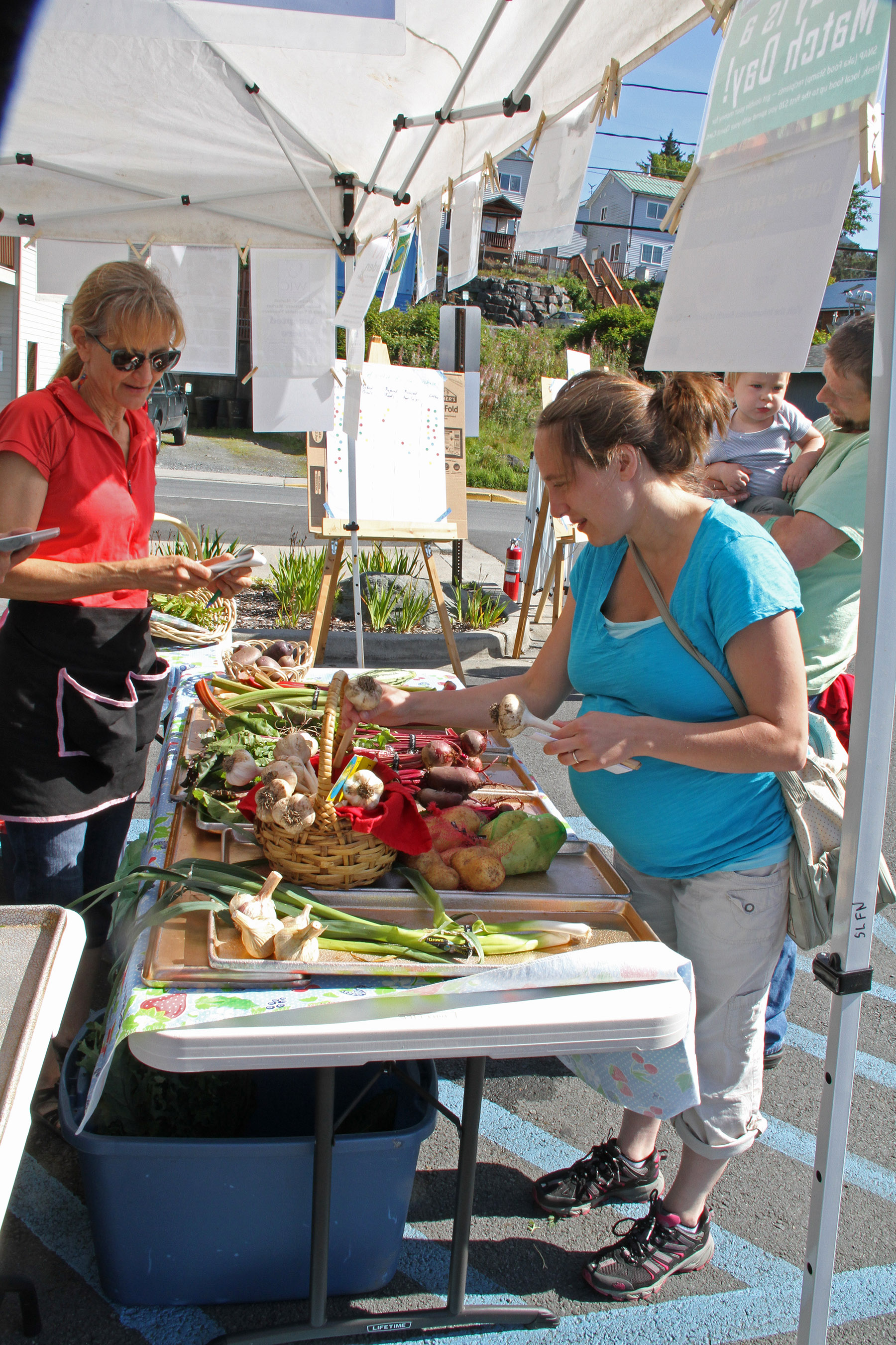 SLFNBoothBethKindigWithCustomer Published August 16, 2015 at 1800 × 2700 in • Scenes from the fourth Sitka Farmers Market of the 2015 summer ← Previous Next →