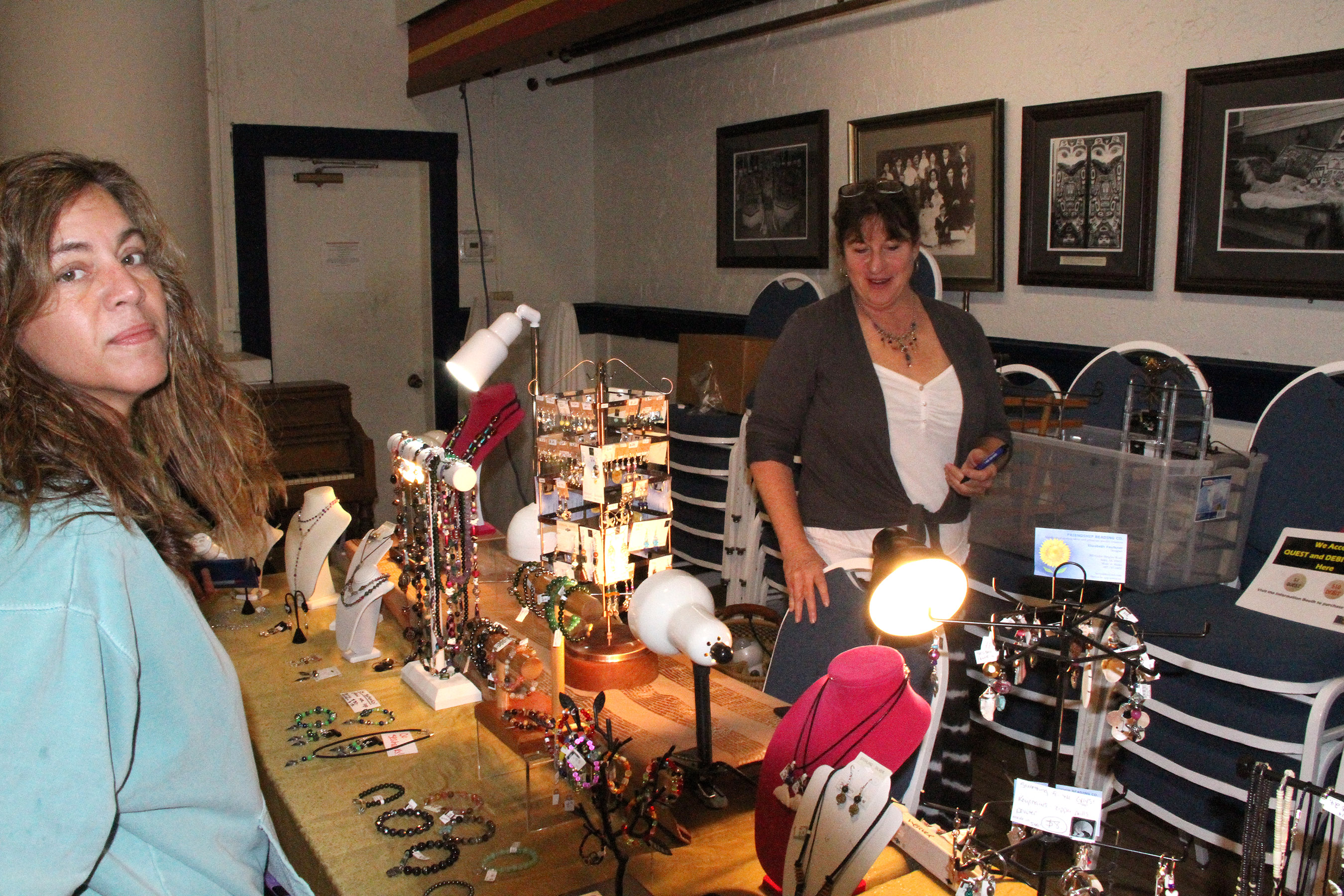 ElizabethFaulknerFriendshipBeadsAndCustomer Published August 30, 2015 at 2700 × 1800 in • Scenes from the fifth Sitka Farmers Market of the 2015 summer, and the Sitka Slug Races ← Previous Next →