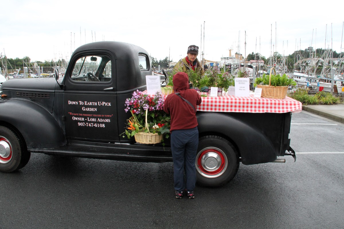 LoriAdamsChatsWithCustomer Published August 30, 2015 at 2700 × 1800 in • Scenes from the fifth Sitka Farmers Market of the 2015 summer, and the Sitka Slug Races ← Previous Next →