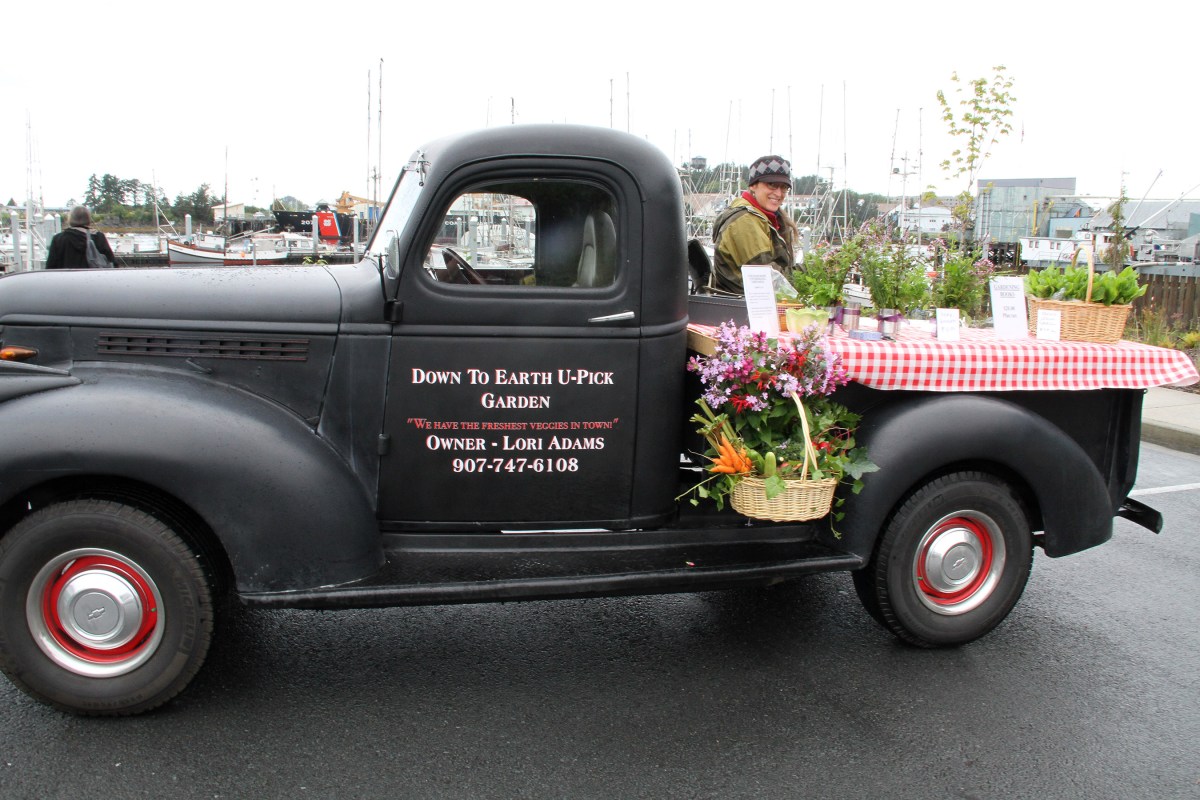 LoriAdamsDownToEarthUPickGardenTruck Published August 30, 2015 at 2700 × 1800 in • Scenes from the fifth Sitka Farmers Market of the 2015 summer, and the Sitka Slug Races ← Previous Next →