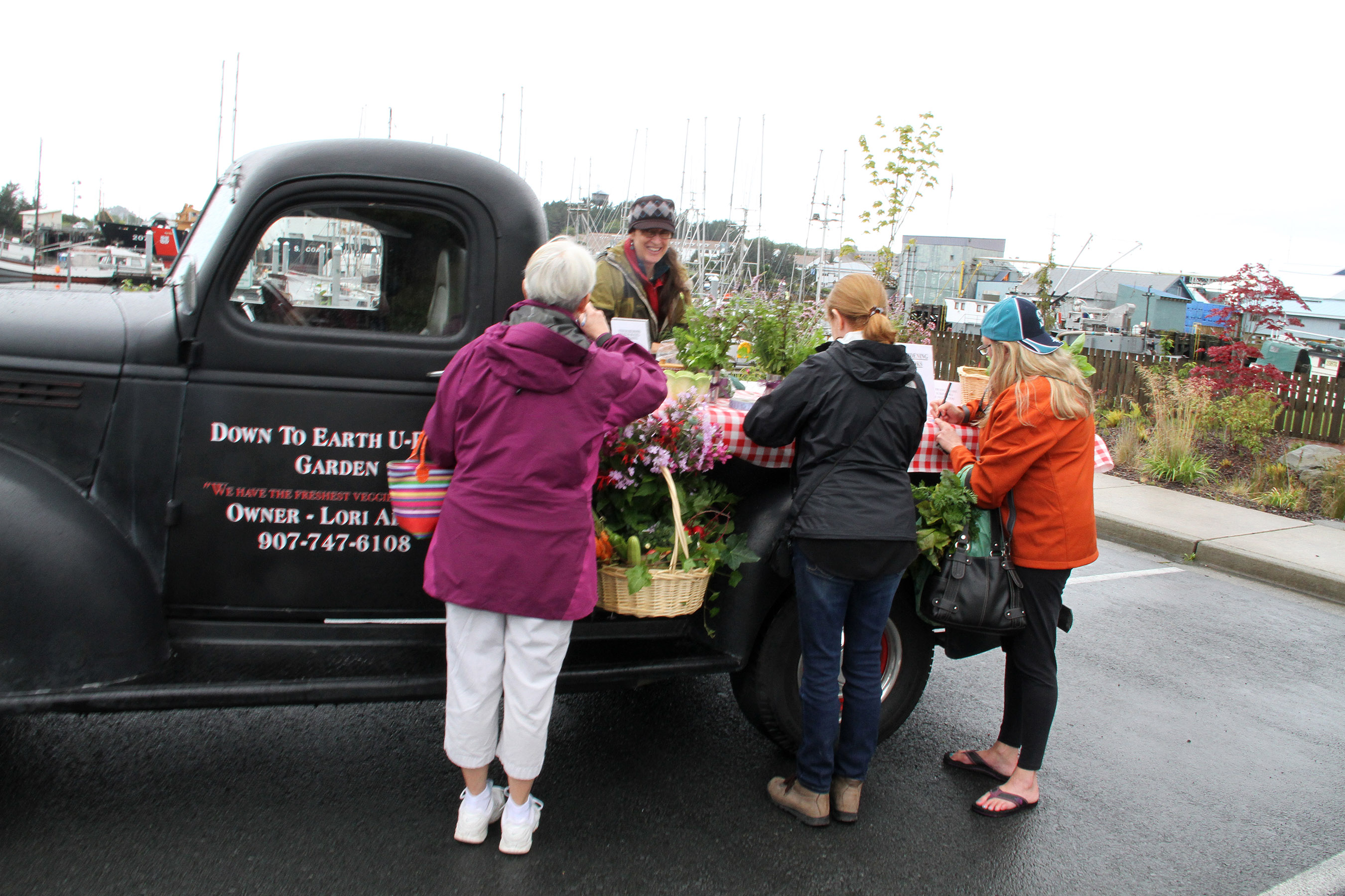 LoriAdamsHelpsCustomers Published August 30, 2015 at 2700 × 1800 in • Scenes from the fifth Sitka Farmers Market of the 2015 summer, and the Sitka Slug Races ← Previous Next →