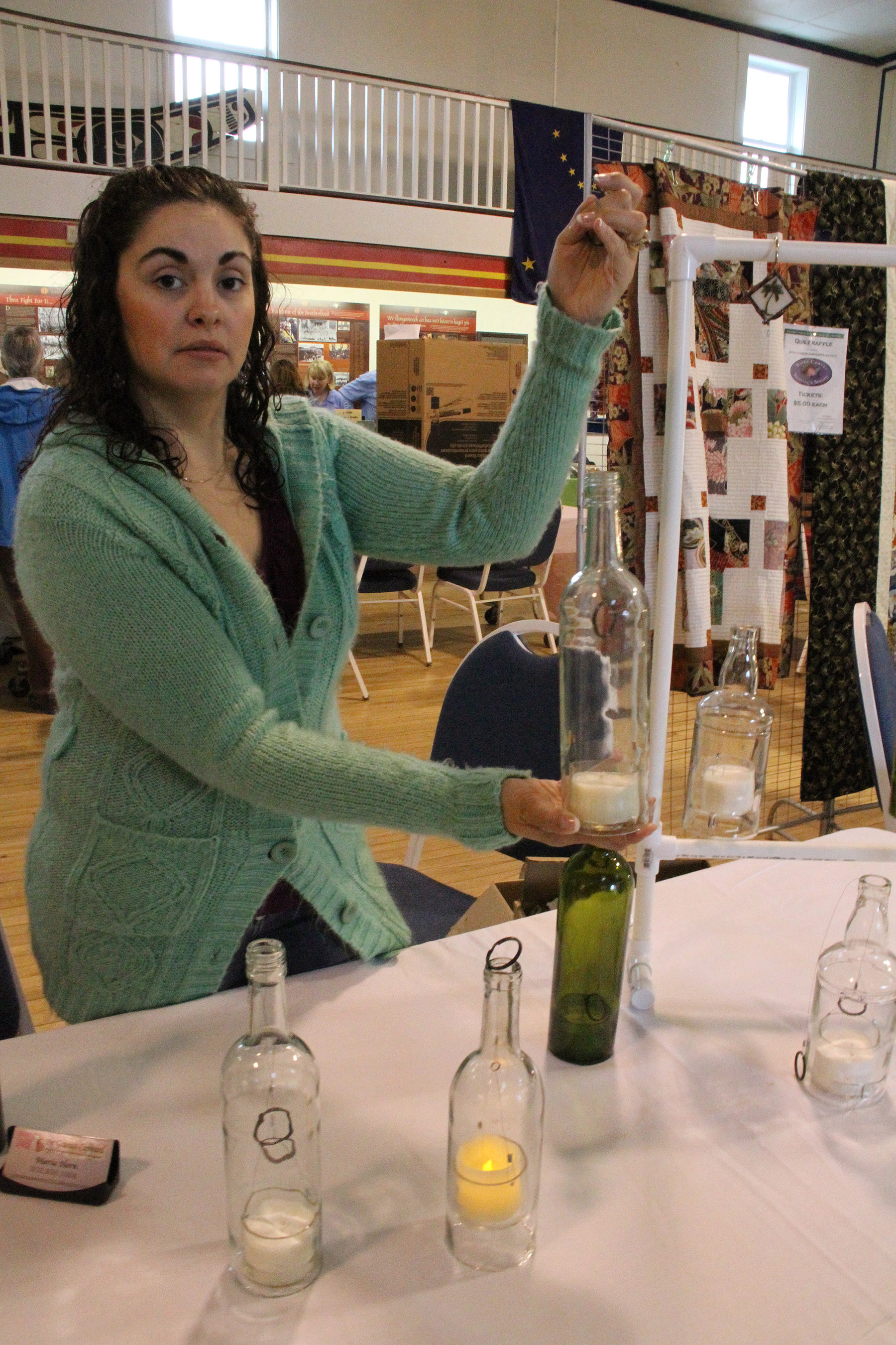 MariaHornWithBottleLantern Published August 30, 2015 at 1800 × 2700 in • Scenes from the fifth Sitka Farmers Market of the 2015 summer, and the Sitka Slug Races ← Previous Next →