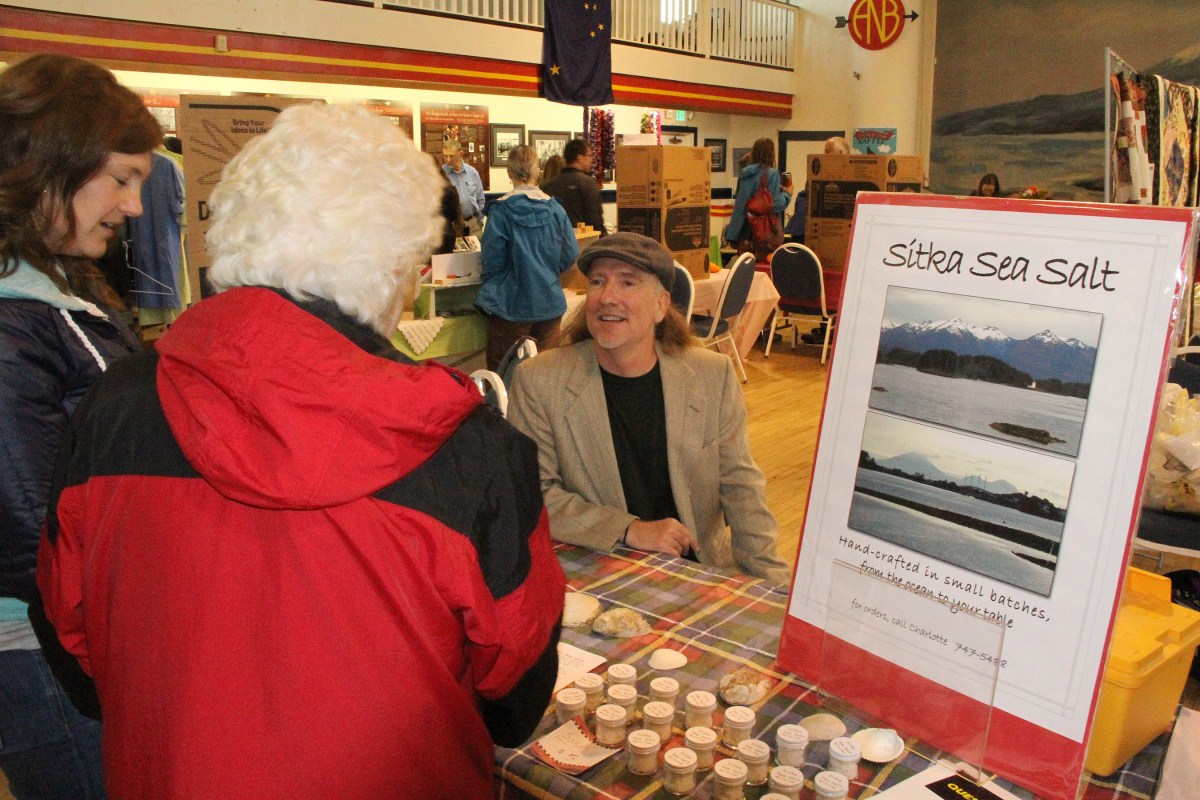 SitkaSeaSaltDaveNichollsChatsWithAnnePollnowAndOtherWoman Published August 30, 2015 at 2700 × 1800 in • Scenes from the fifth Sitka Farmers Market of the 2015 summer, and the Sitka Slug Races ← Previous Next →