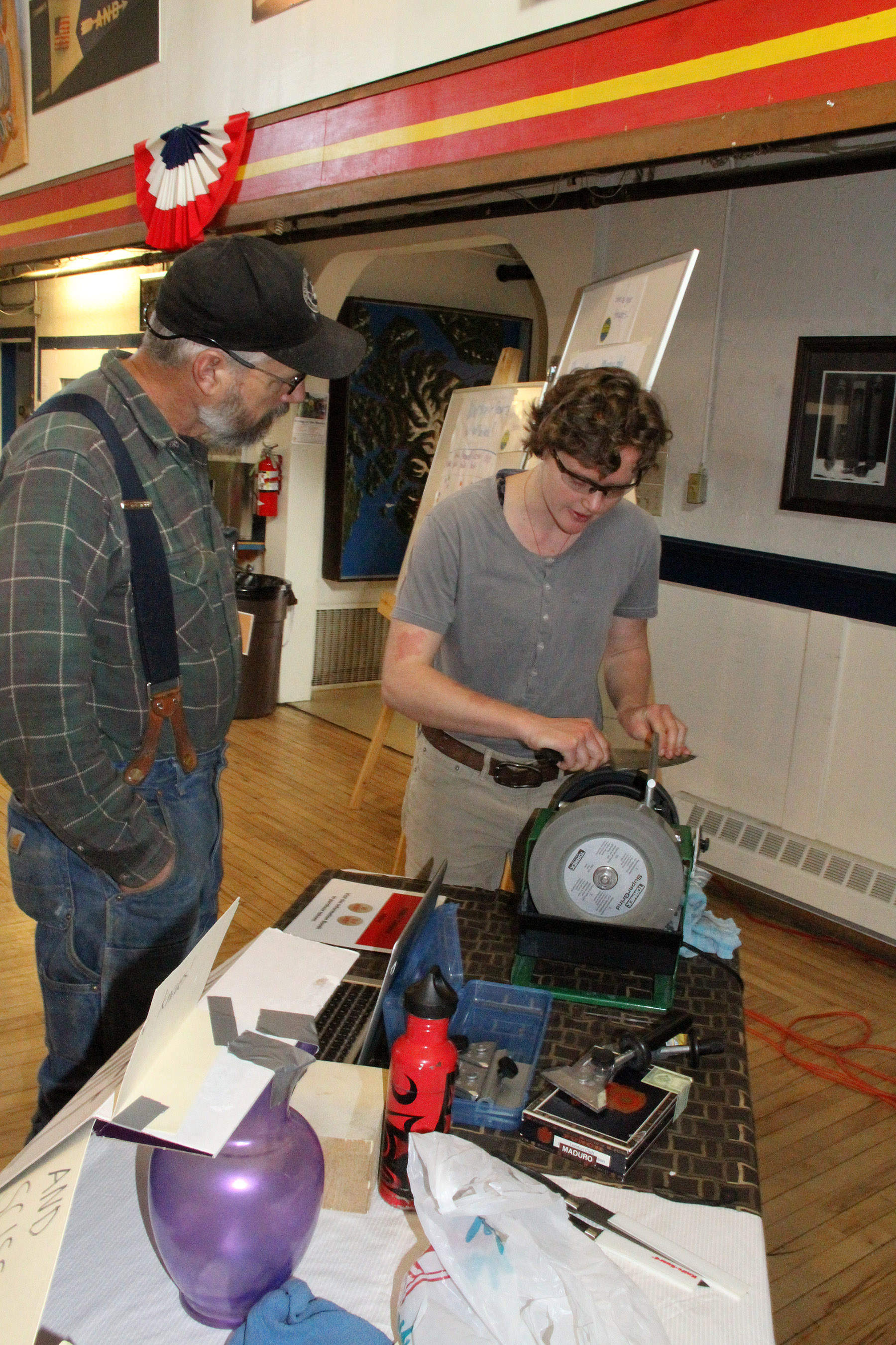 MaureenOHanlonSharpensKnifeForMan Published September 14, 2015 at 1800 × 2700 in • Scenes from the sixth and final Sitka Farmers Market of the 2015 summer ← Previous Next →