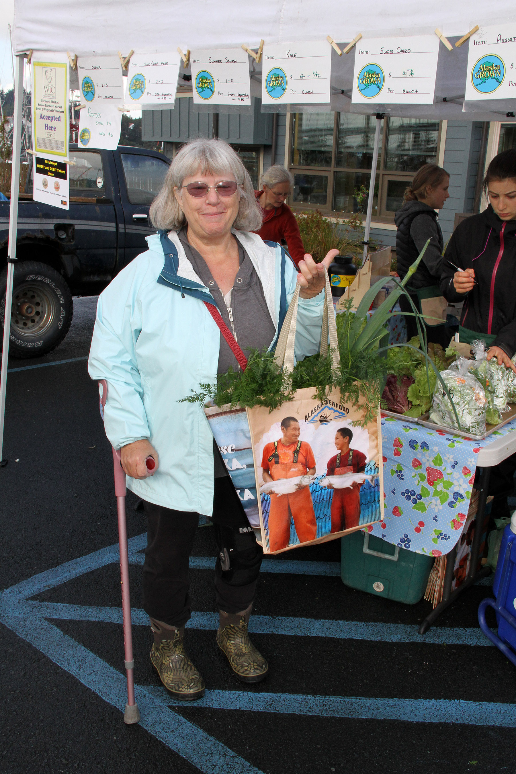 SLFNBoothLadyShowsOffHerVeggieHaul Published September 14, 2015 at 1800 × 2700 in • Scenes from the sixth and final Sitka Farmers Market of the 2015 summer ← Previous Next →