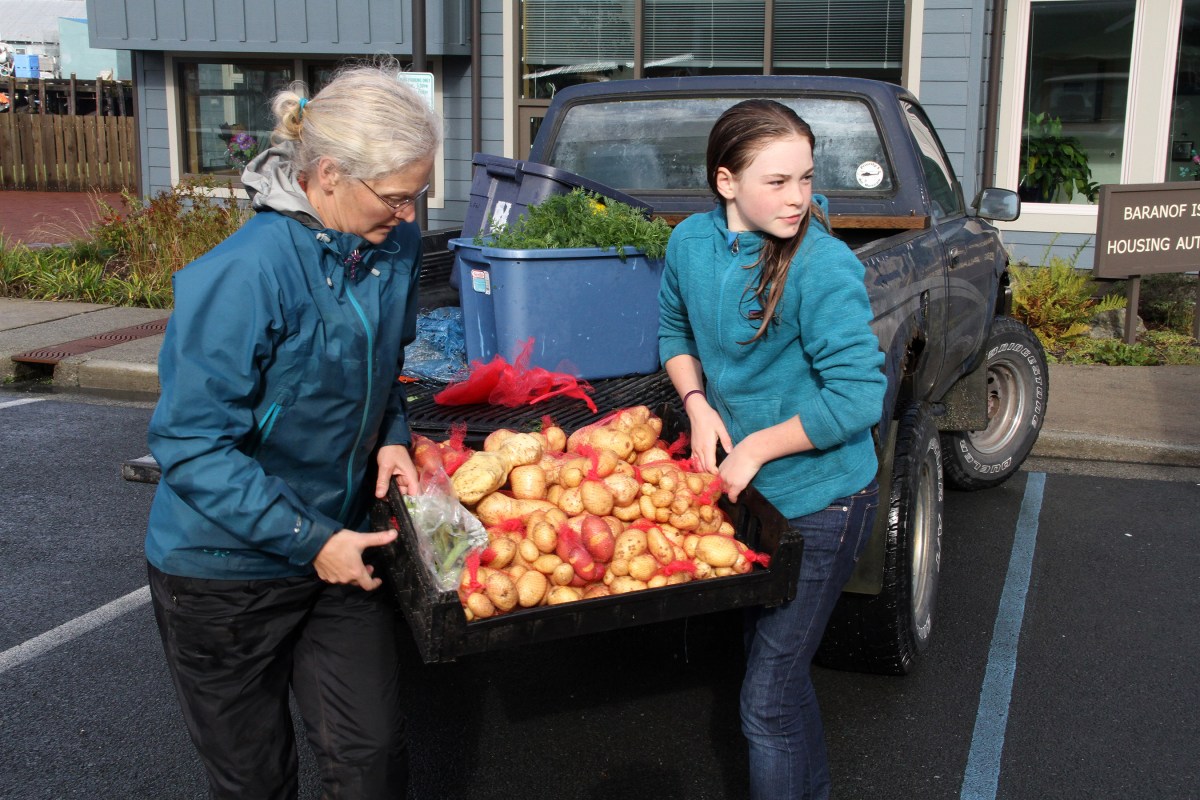 SLFNBoothLauraSchmidtAndDaughterWithPotatoes Published September 14, 2015 at 2700 × 1800 in • Scenes from the sixth and final Sitka Farmers Market of the 2015 summer ← Previous Next →