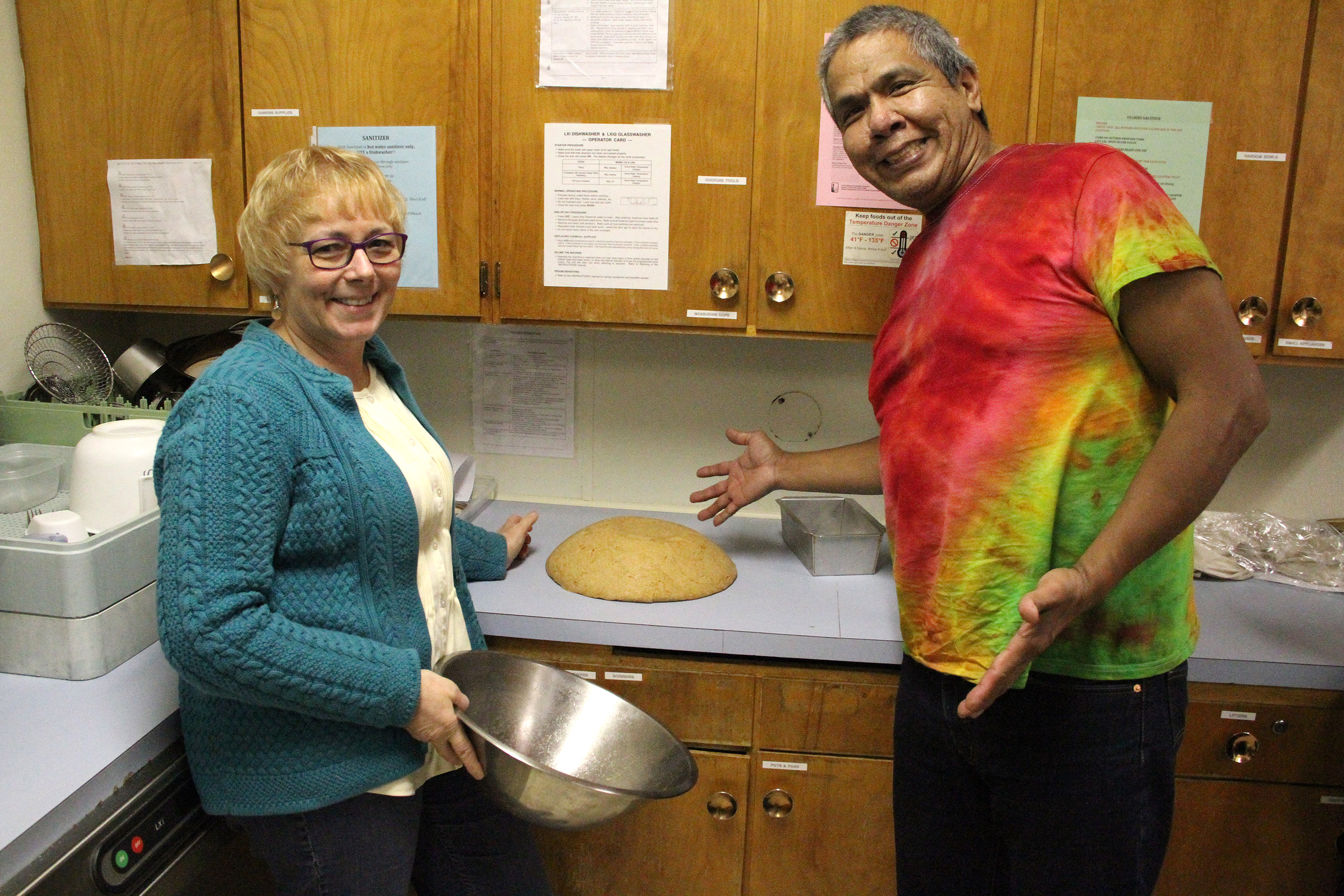 LadyInGreenAndRobertBainesAfterDumpingRisingBreadOntoCounter Published November 3, 2015 at 2700 × 1800 in • Scenes from the second class in the Sitka Kitch’s Cooking From Scratch series — Baking Whole-Grain Bread ← Previous Next →