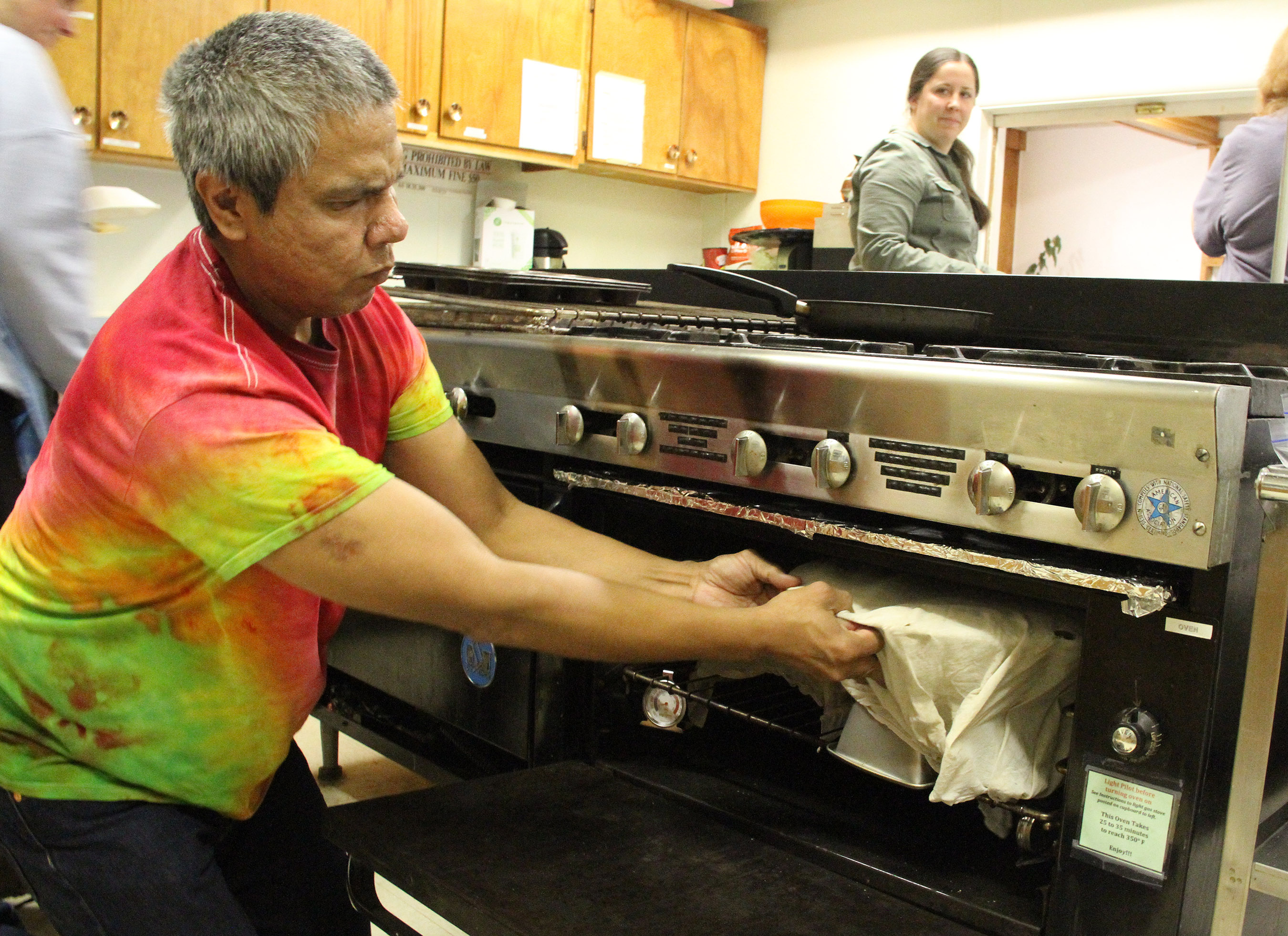 RobertBainesPullsRisingBreadDoughFromOven Published November 3, 2015 at 2700 × 1962 in • Scenes from the second class in the Sitka Kitch’s Cooking From Scratch series — Baking Whole-Grain Bread ← Previous Next →
