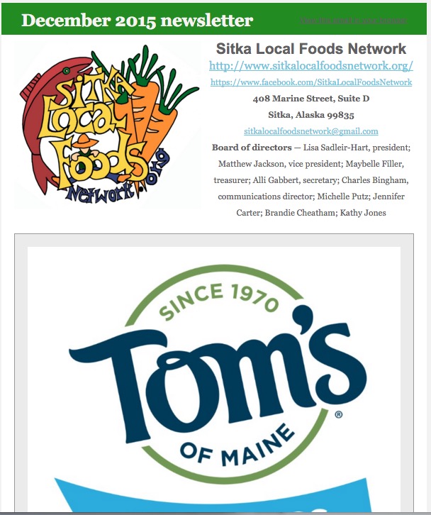 SLFNDecember2015NewsletterScreenshot Published December 5, 2015 at 608 × 726 in • Check out the December 2015 edition of the Sitka Local Foods Network newsletter