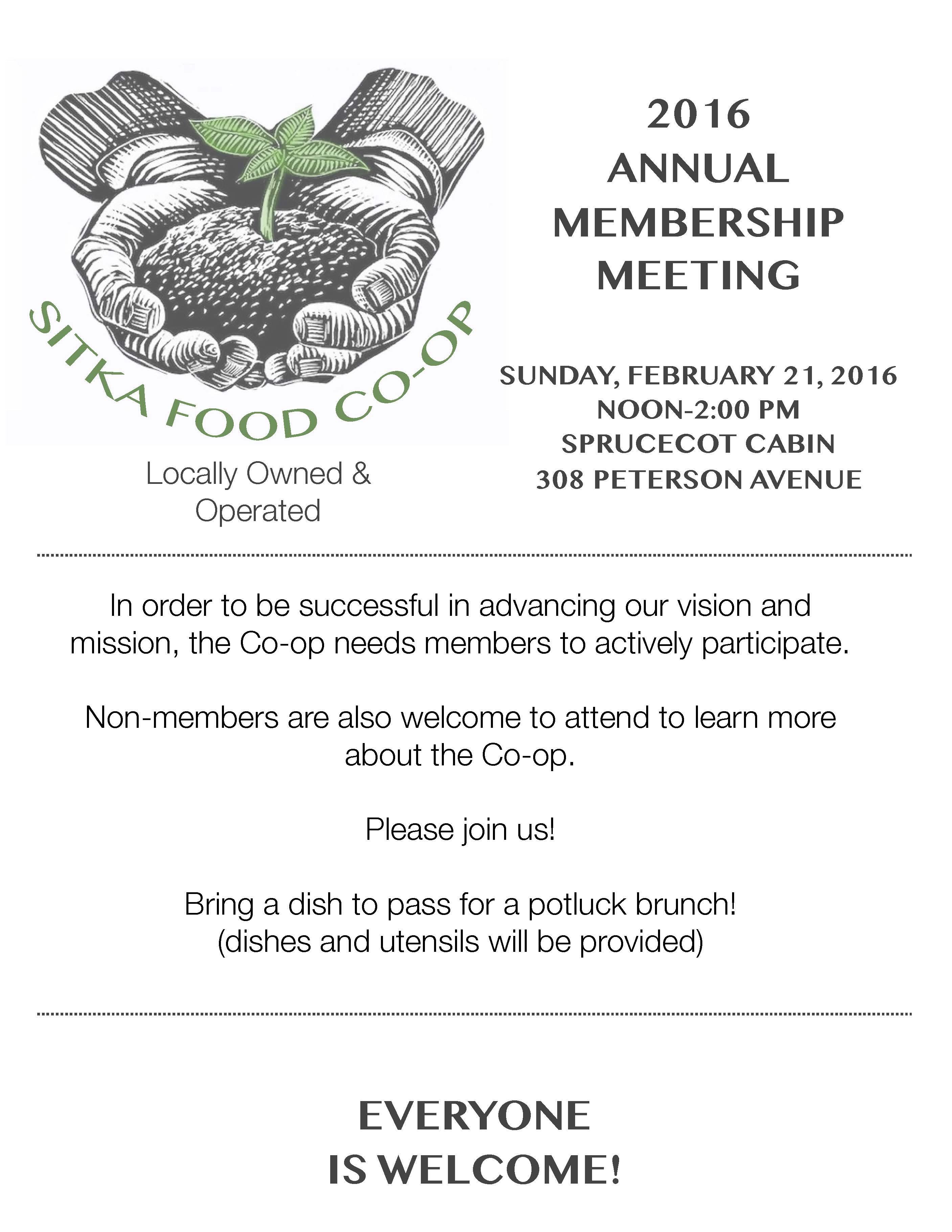 ANNUAL MEETING FLYER Published February 13, 2016 at 2814 × 3641 in • Sitka Food Co-op to host annual membership meeting and potluck on Sunday, Feb. 21