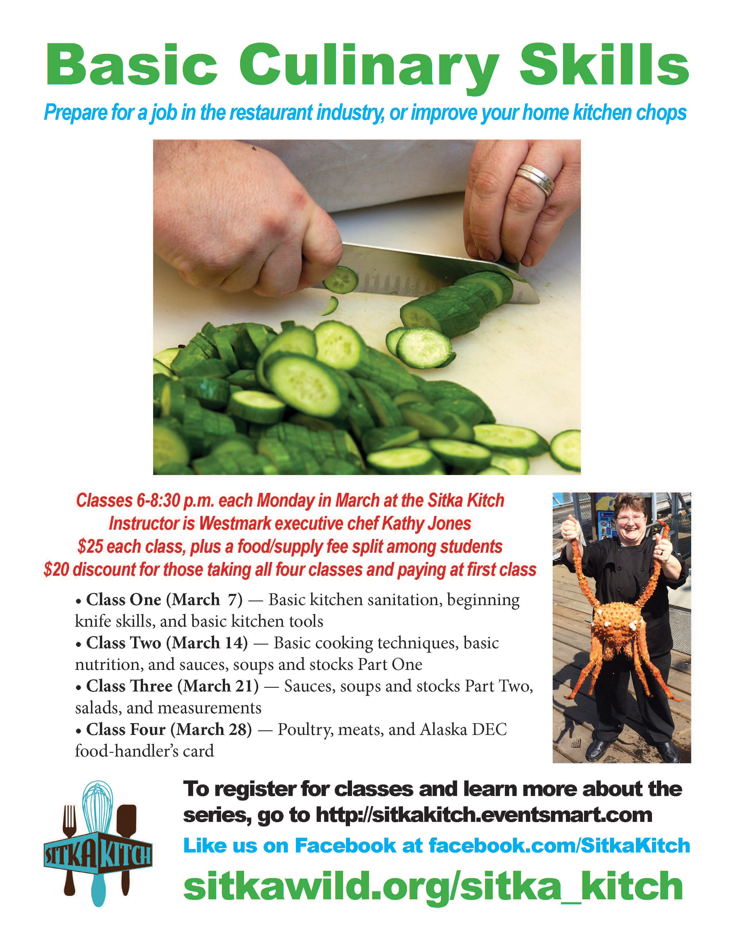 BasicCulinarySkillsFlier Published February 16, 2016 at 2550 × 3300 in • Sitka Kitch to offer Basic Culinary Skills classes in March for those seeking restaurant work ← Previous
