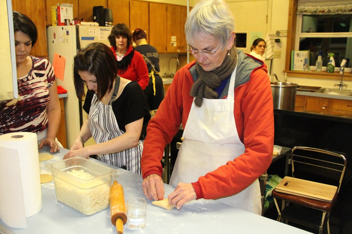 LeticiaStephanieAndMaryThereseFoldCheeseEmpanadas Published March 1, 2016 at 2700 × 1800 in Scenes from the last Winter Cooking From Scratch series class at the Sitka Kitch — Homemade Empanadas ← Previous Next →