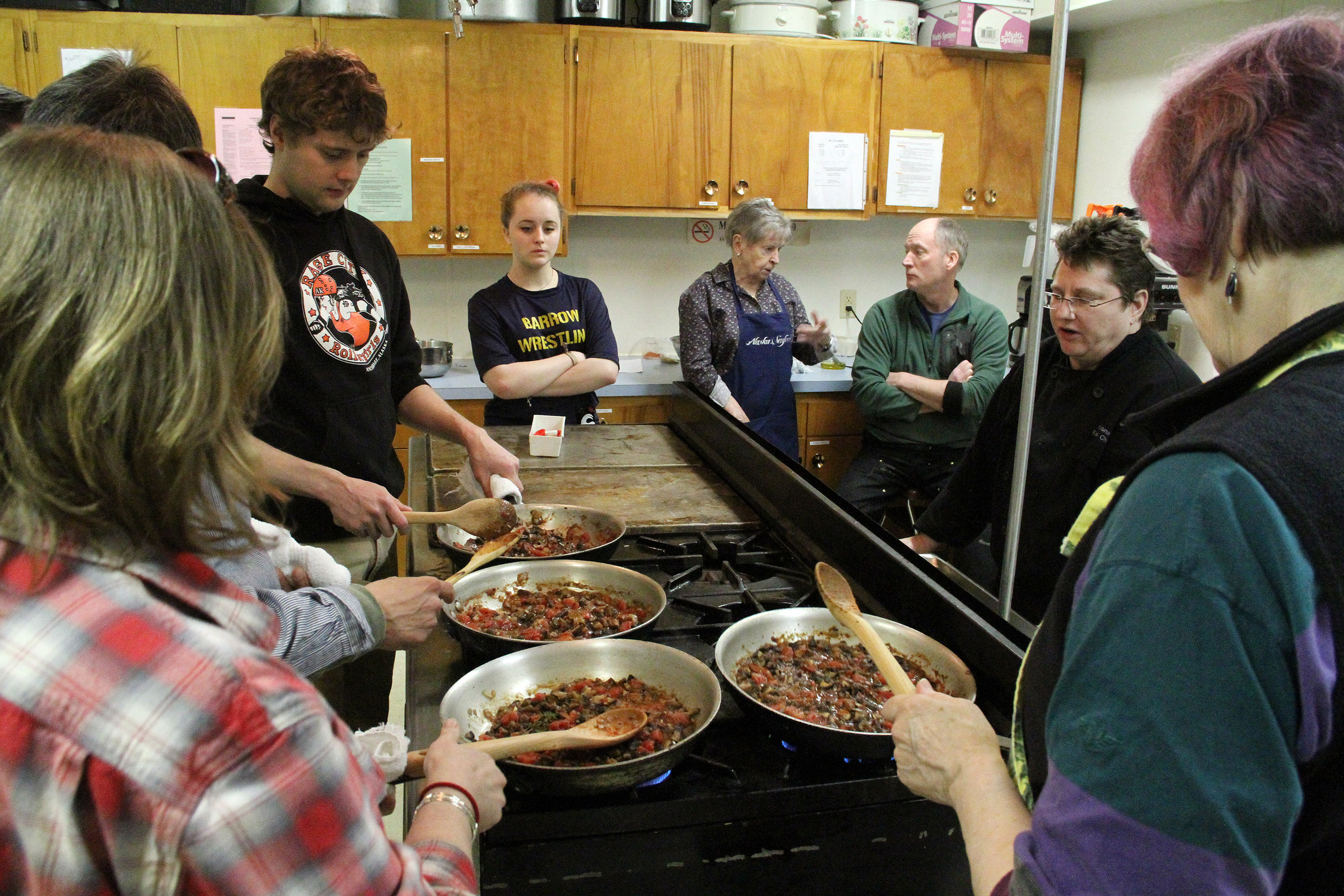 StudentsCookTomatoesAndMushrooms Published March 16, 2016 at 2700 × 1800 in Scenes from the second Basic Culinary Skills class at the Sitka Kitch ← Previous Next →