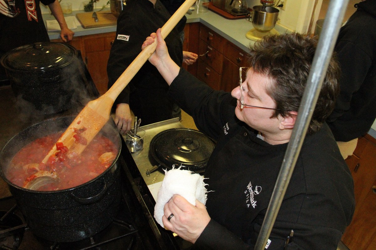 KathyUsesBigPaddleToStirTomatoSauce Published March 23, 2016 at 2700 × 1800 in Scenes from the third Basic Culinary Skills class at the Sitka Kitch ← Previous Next →