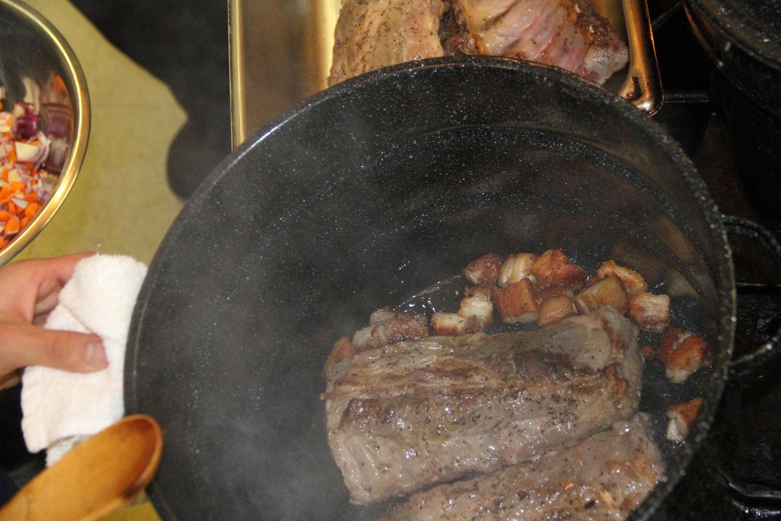 SearingPorkRibs Published March 23, 2016 at 2700 × 1800 in Scenes from the third Basic Culinary Skills class at the Sitka Kitch ← Previous Next →
