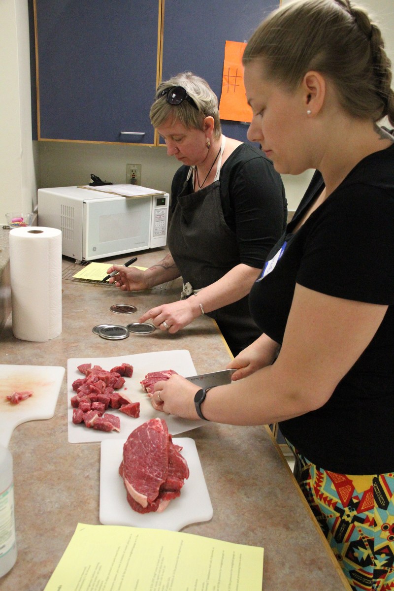 NickieKnightChopsBeefAsMindyAndersonWritesSpiceMixOnLids Published May 19, 2016 at 1800 × 2700 in Scenes from the Safe Home Food Preservation certification course May 14-15 in Sitka ← Previous Next →