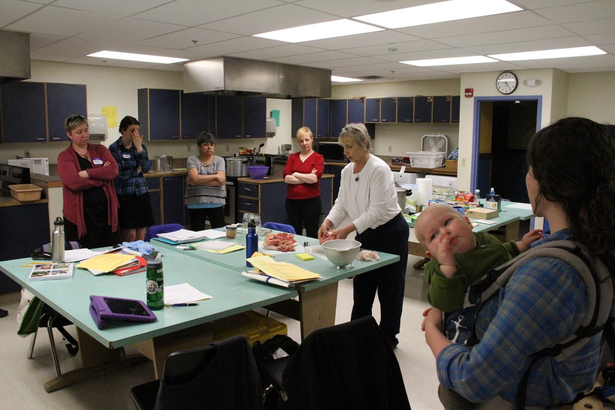 StudentsWatchRoxieRodgersDinstelChopUpChicken Published May 19, 2016 at 2700 × 1800 in Scenes from the Safe Home Food Preservation certification course May 14-15 in Sitka ← Previous Next →