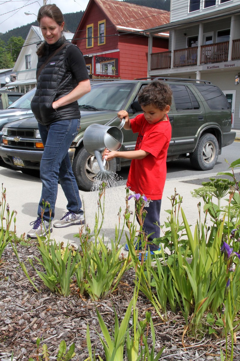 ColetteNelsonWatchesMilesWaterPlants Published July 3, 2016 at 1800 × 2700 in Scenes from the first Sitka Farmers Market of the 2016 summer ← Previous Next →