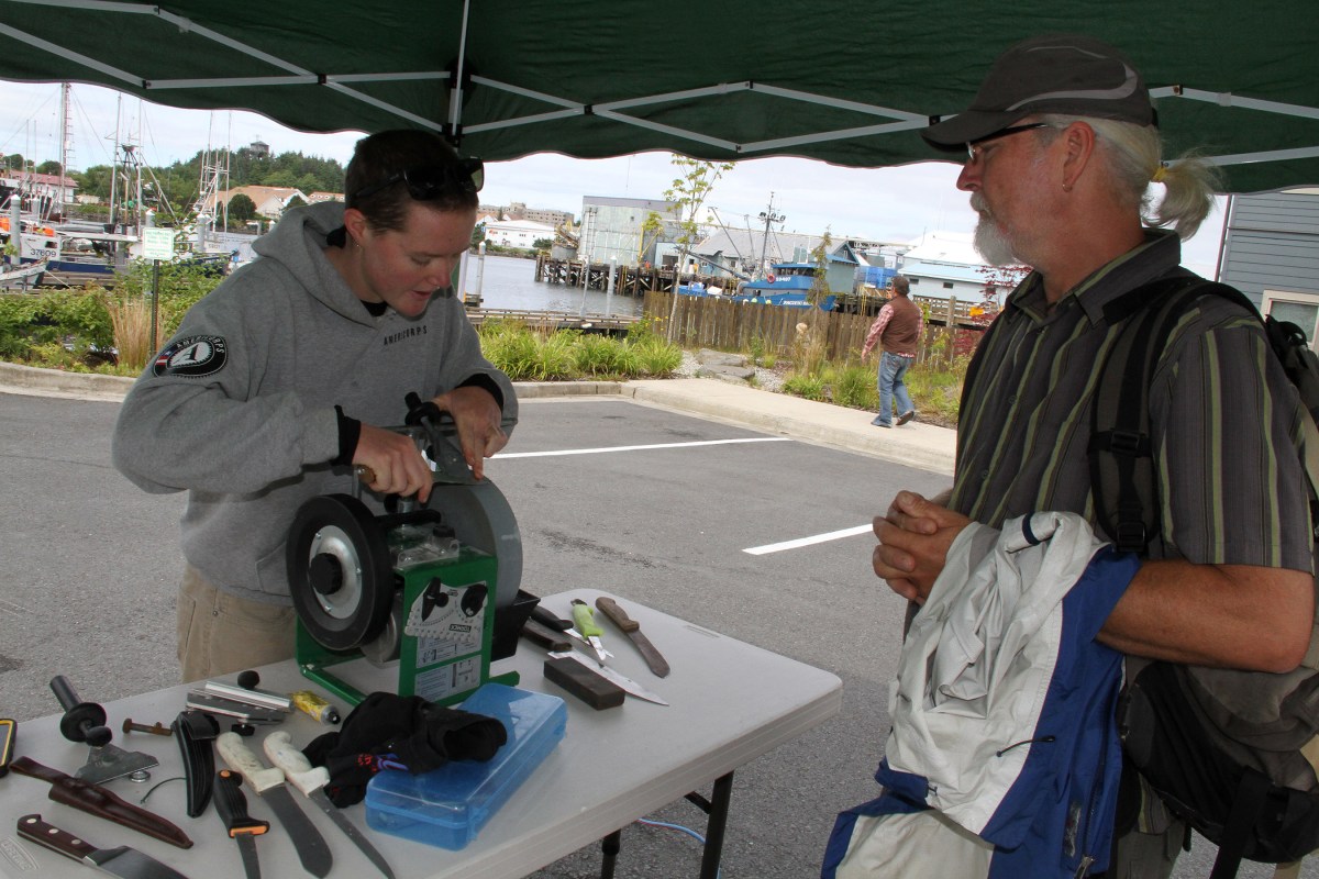 MaureenOHanlonSharpensKnifeForCustomer Published July 3, 2016 at 2700 × 1800 in Scenes from the first Sitka Farmers Market of the 2016 summer ← Previous Next →