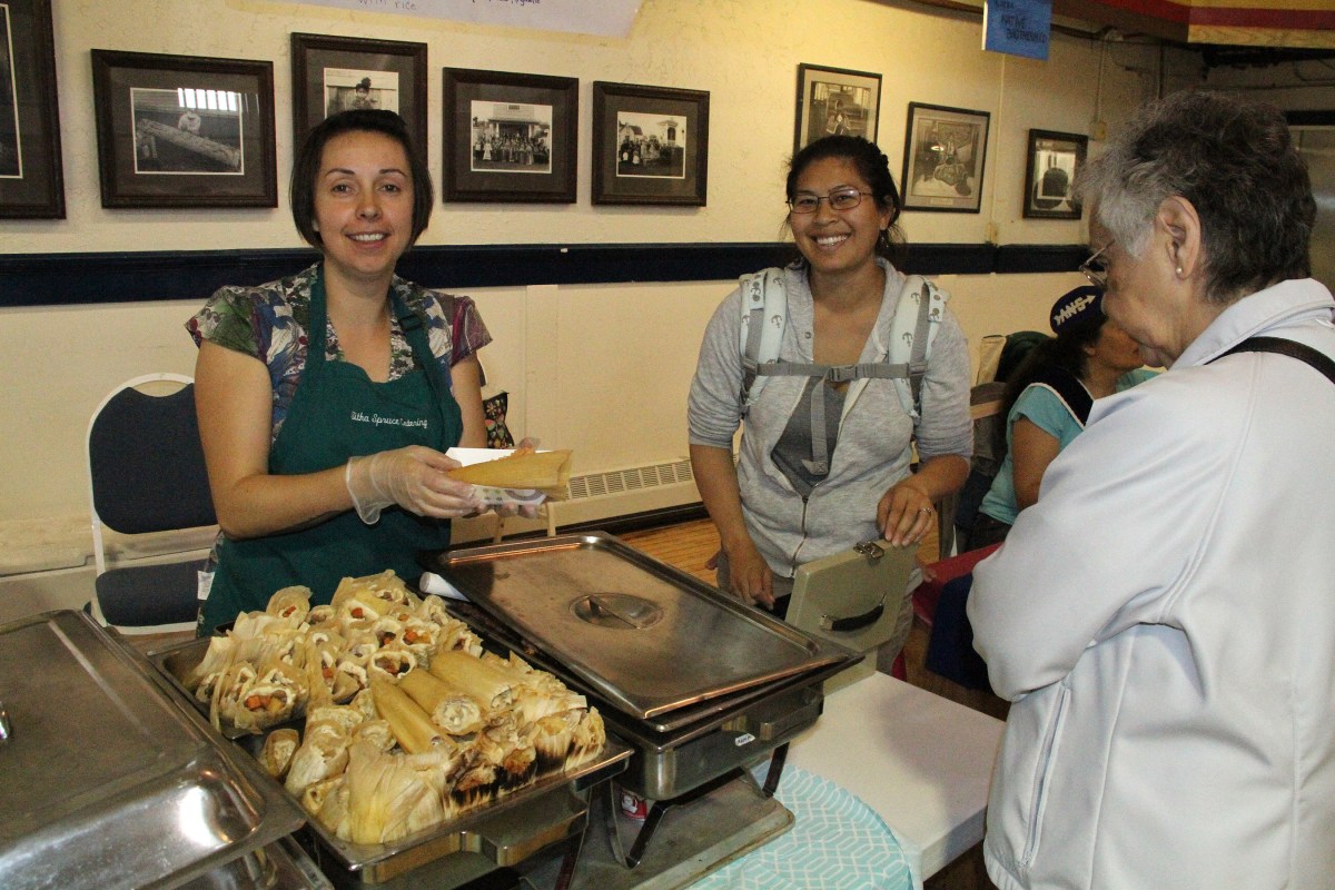 SitkaSpruceCateringJerenSchmidtDishesUpHomemadeTamaleWithCrystal Published July 17, 2016 at 2700 × 1800 in Scenes from the second Sitka Farmers Market of the 2016 summer ← Previous Next →