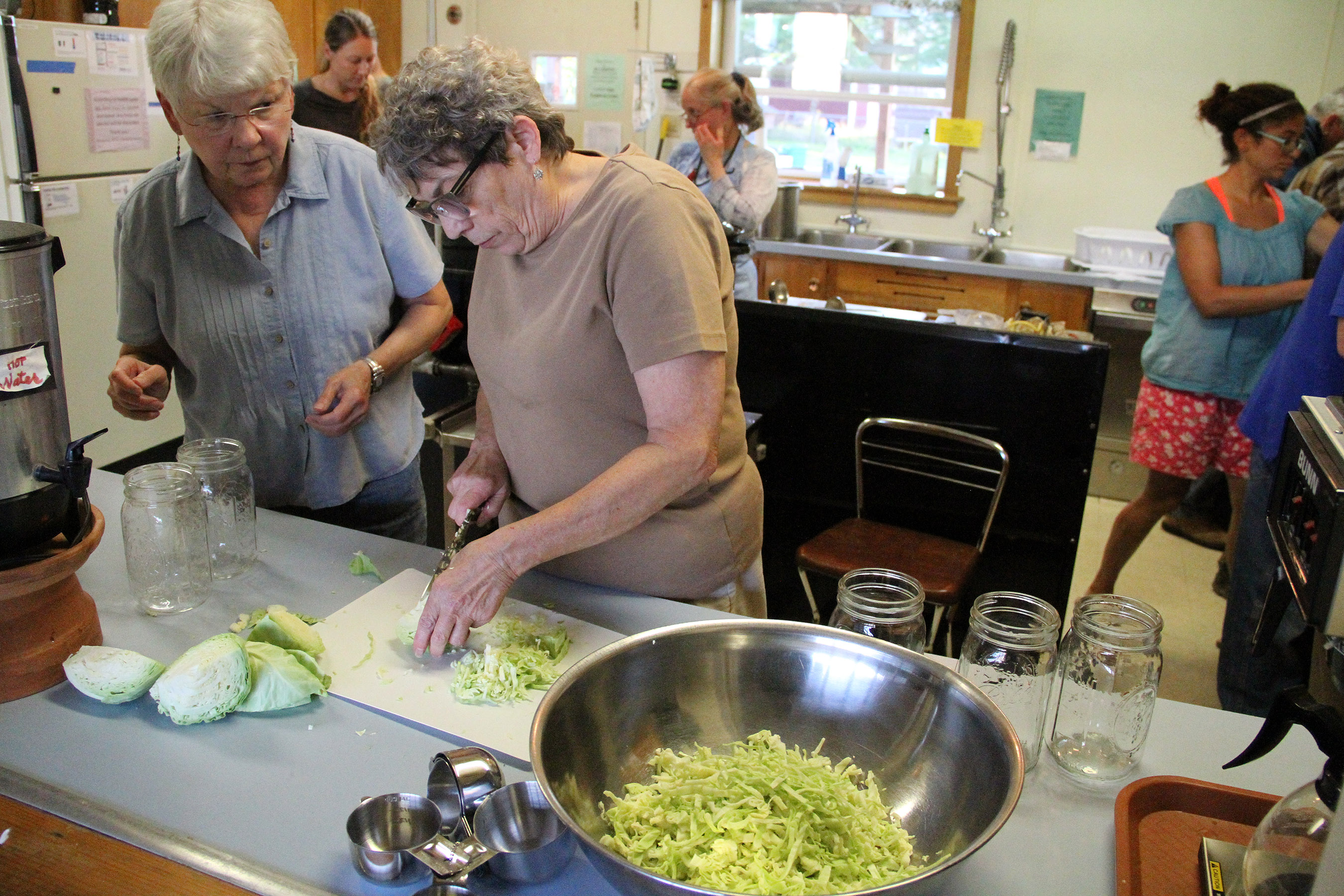 JackieBarmoyChopsCabbageAsJoycePearsonWatches Published July 20, 2016 at 2700 × 1800 in Scenes from the Sitka Kitch’s first Preserving the Harvest class — Simple Pickles and Sauerkraut ← Previous Next →