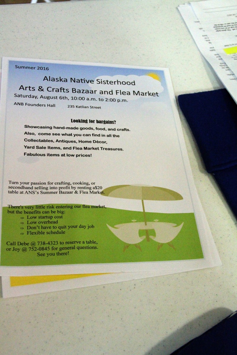 ANSArtsAndCraftsBazaarFleaMarketFlier Published July 31, 2016 at 1800 × 2700 in Scenes from the third Sitka Farmers Market of the 2016 summer ← Previous Next →