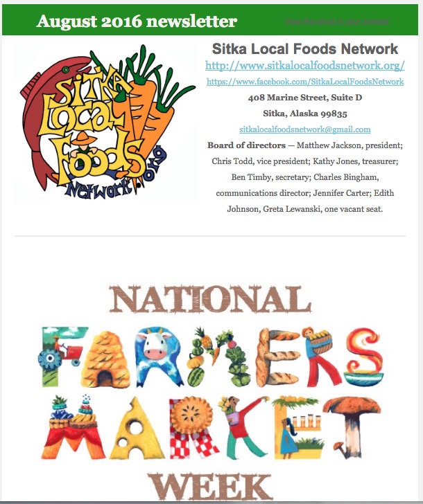 August2016SLFNNewsletterScreenshot Published August 1, 2016 at 610 × 728 in Check out the August 2016 edition of the Sitka Local Foods Network newsletter