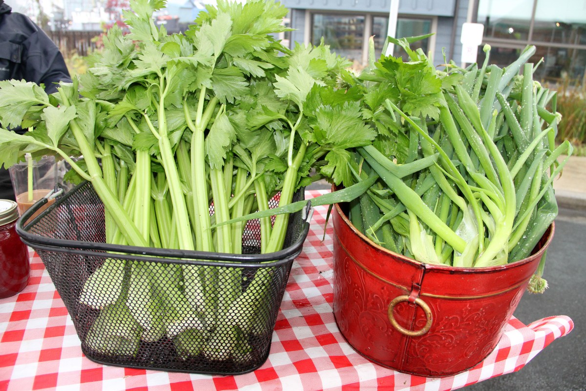 DownToEarthUPickGardenCeleryGarlicScapes Published August 14, 2016 at 2700 × 1800 in Scenes from the fourth Sitka Farmers Market of the 2016 summer ← Previous Next →