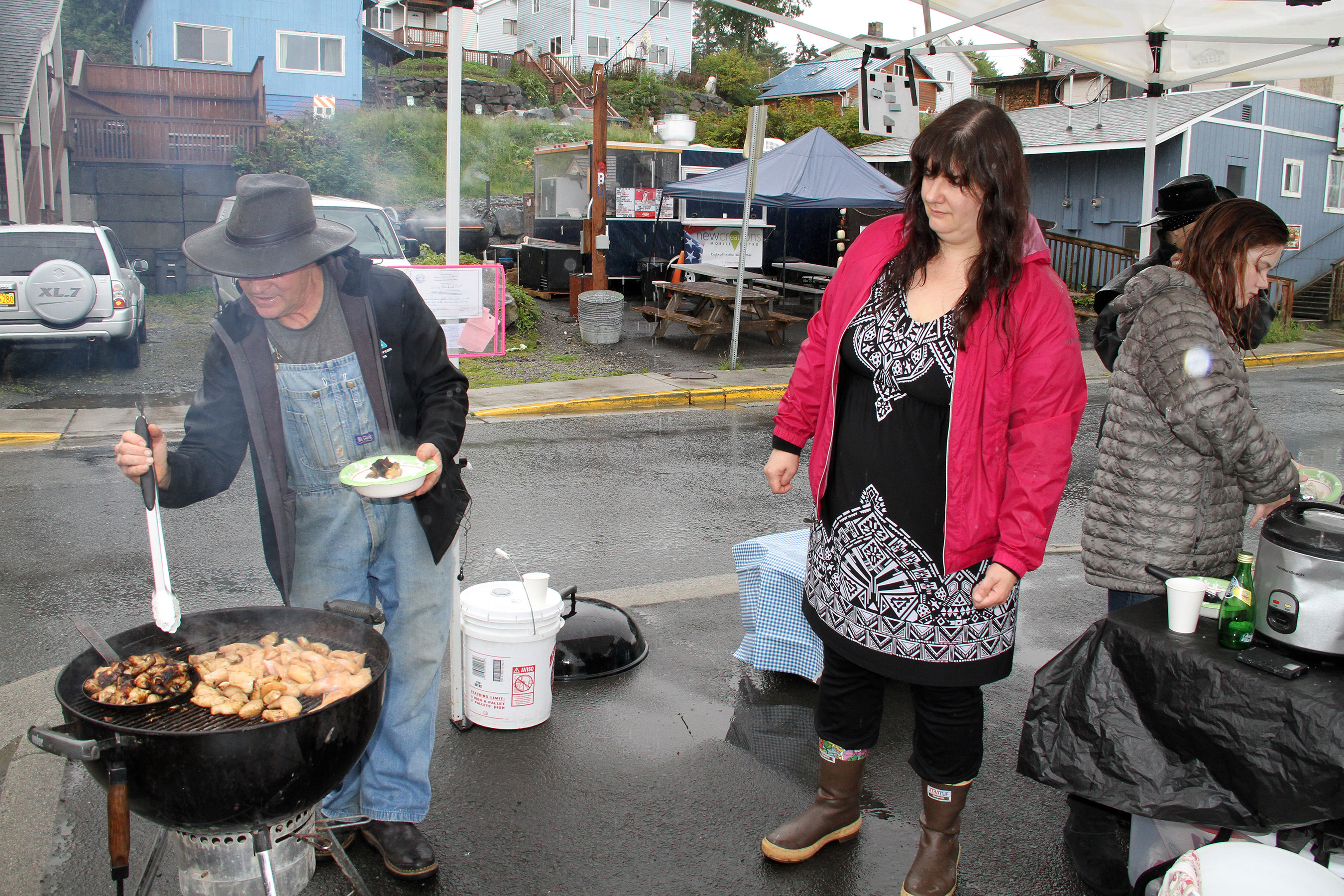 KerryMacLaneServesUpBlackcodCollarsWithHelpers Published August 14, 2016 at 2700 × 1800 in Scenes from the fourth Sitka Farmers Market of the 2016 summer ← Previous Next →