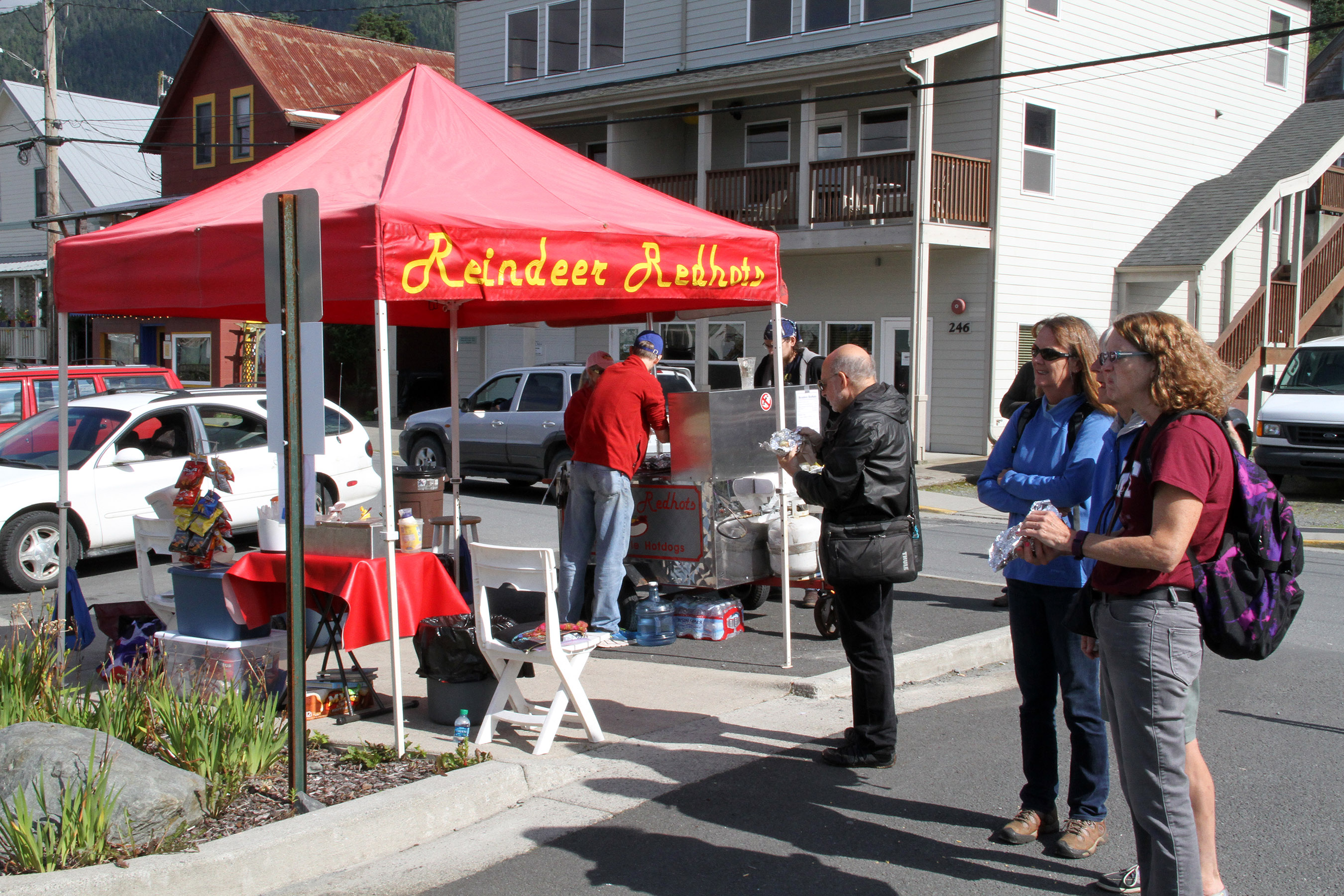 ReindeerRedhotsPeopleEnjoyingTheirHotDogs Published August 21, 2016 at 2700 × 1800 in Scenes from the fifth Sitka Farmers Market of the 2016 summer ← Previous Next →