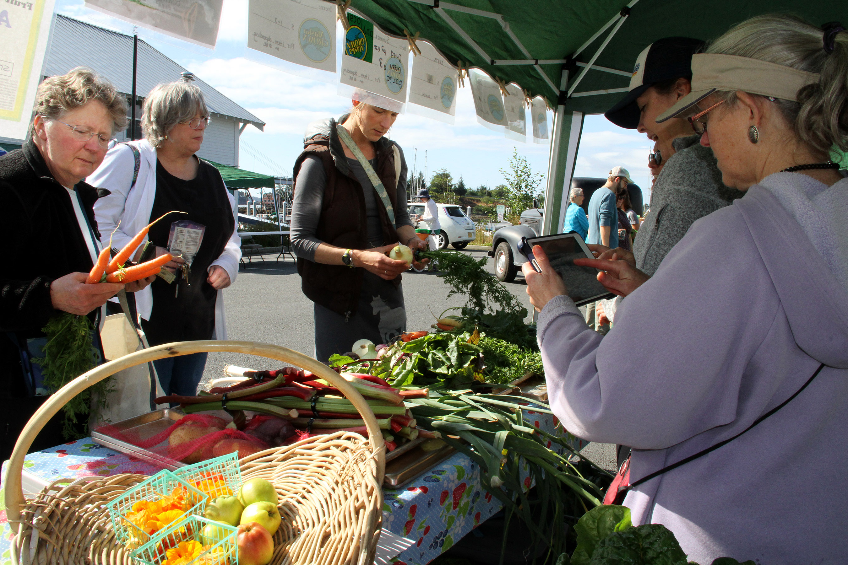 SLFNBoothConnieKreissChecksOutCarrots Published August 21, 2016 at 2700 × 1800 in Scenes from the fifth Sitka Farmers Market of the 2016 summer ← Previous Next →