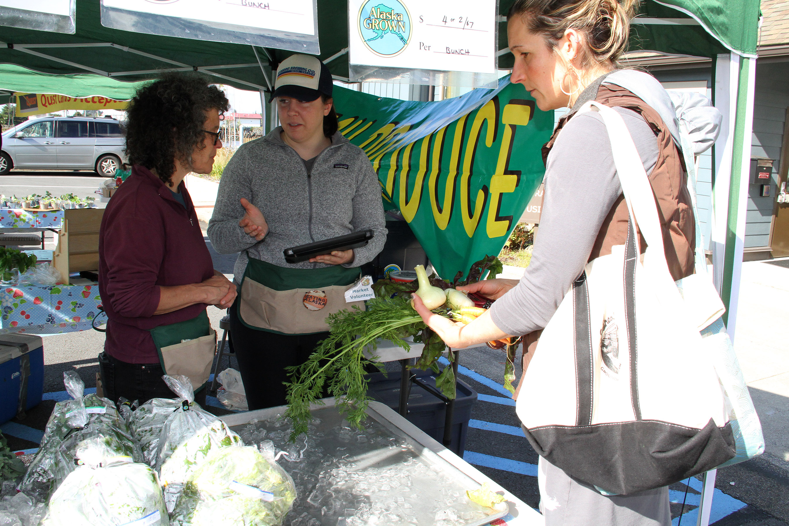 SLFNBoothEllenFrankensteinLaurenHugheyHelpKristinGreen Published August 21, 2016 at 2700 × 1800 in Scenes from the fifth Sitka Farmers Market of the 2016 summer ← Previous Next →