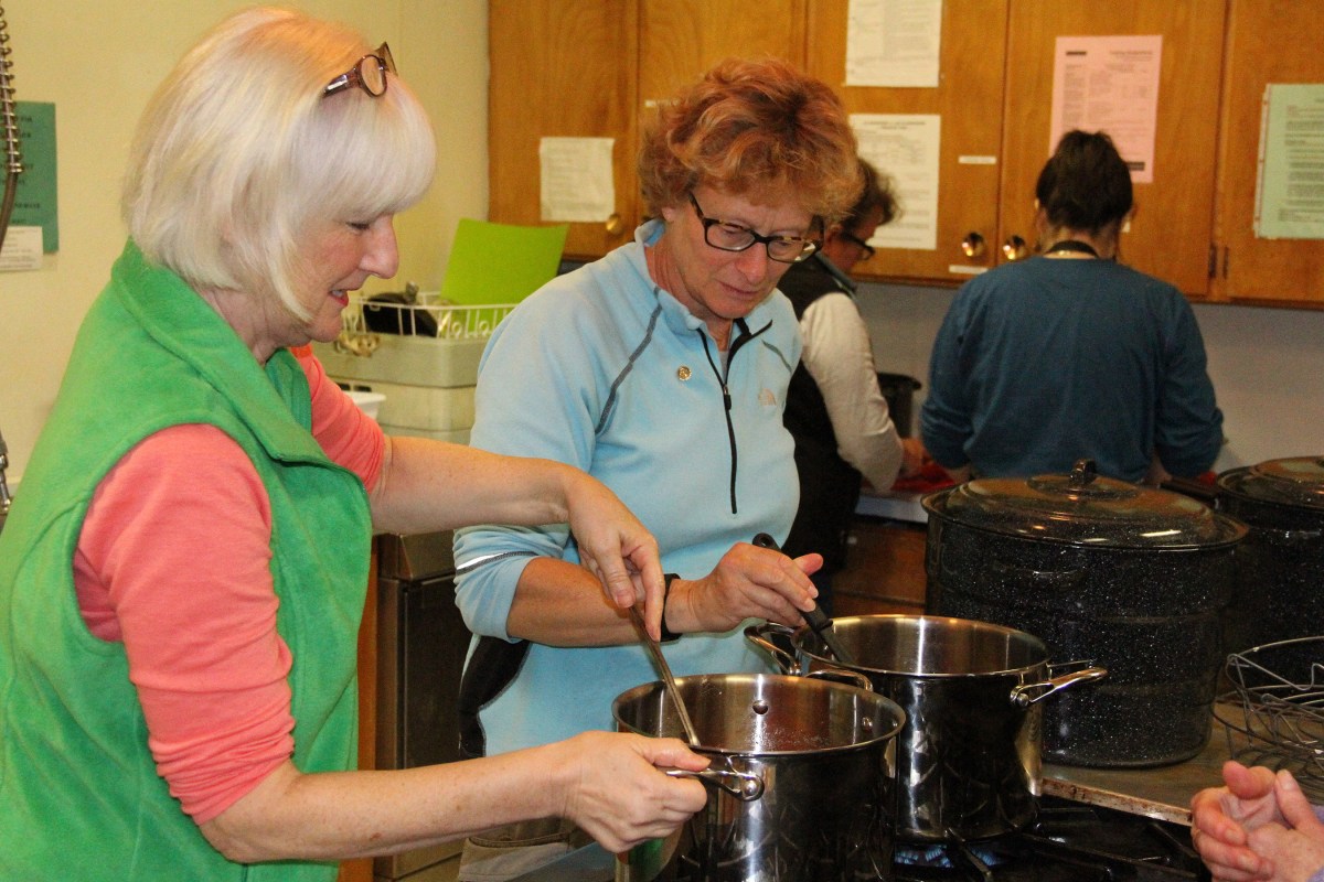 KathyGoddardAndKarenStirChutneys Published August 30, 2016 at 2700 × 1800 in Scenes from the Sitka Kitch’s fourth Preserving the Harvest class — Simple Chutneys and Salsas ← Previous Next →