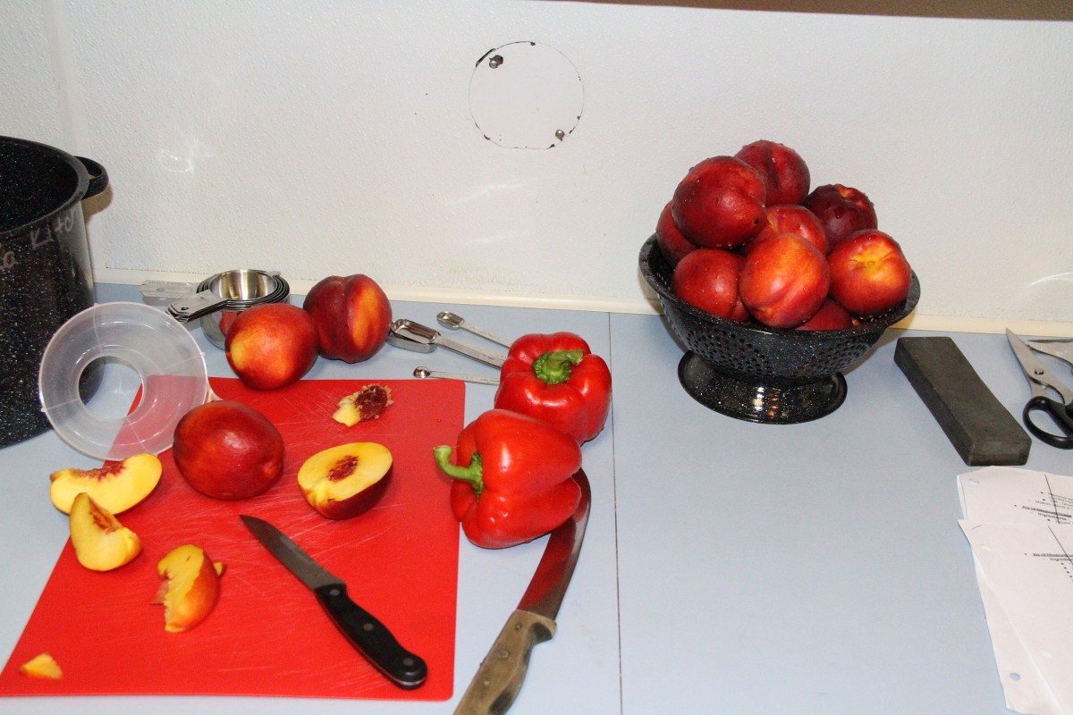 NectarinesAndPeppersAtChoppingStation Published August 30, 2016 at 2700 × 1800 in Scenes from the Sitka Kitch’s fourth Preserving the Harvest class — Simple Chutneys and Salsas ← Previous Next →
