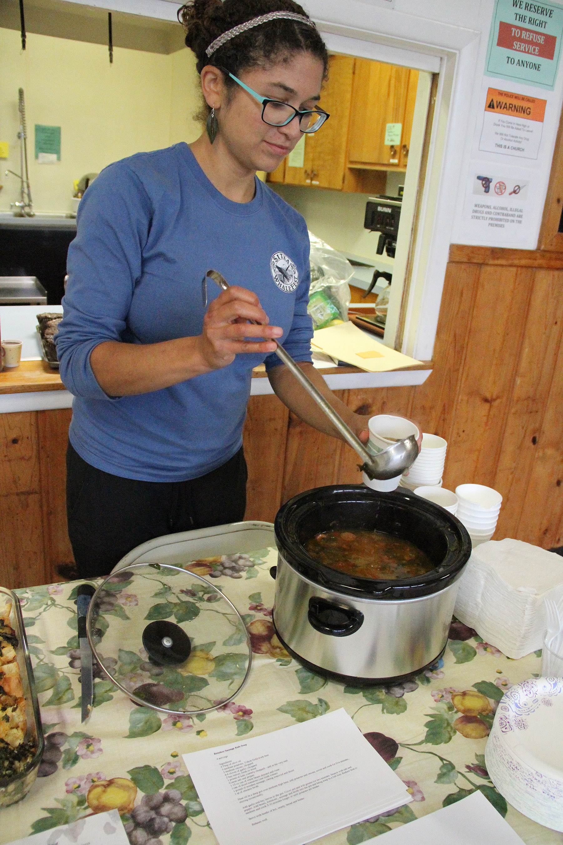 jasmineshawservesreindeersausagekalesoup Published September 27, 2016 at 1800 × 2700 in Scenes from the Community Kale Celebration held Sept. 26 at the Sitka Kitch ← Previous Next →