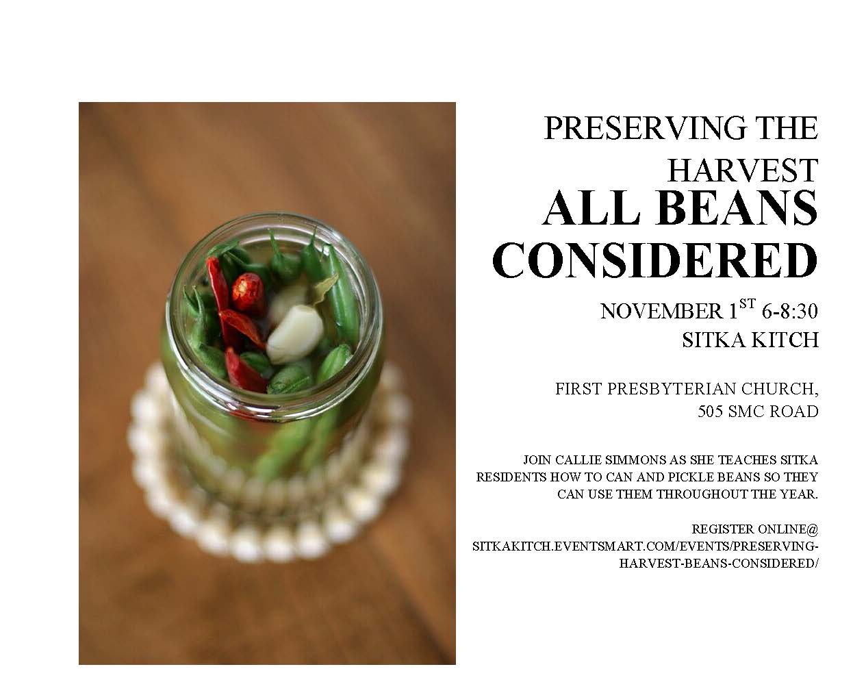 all-beans-considered-flyer Published October 7, 2016 at 1265 × 1012 in Sitka Kitch to host Preserving the Harvest class called All Beans Considered ← Previous