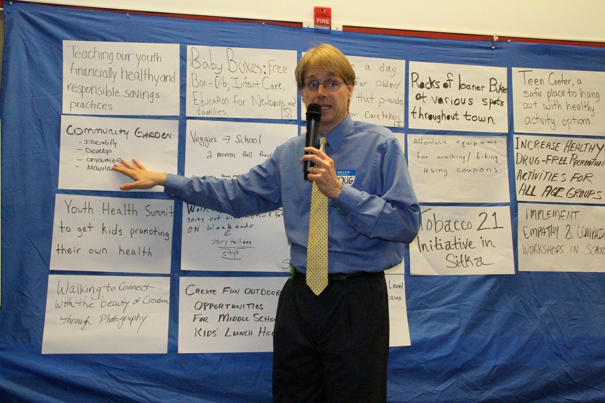 dougosbornereadsoffprojectideasbeforevoting Published October 23, 2016 at 2700 × 1800 in Sitka Health Summit chooses two community wellness projects related to local food ← Previous Next →