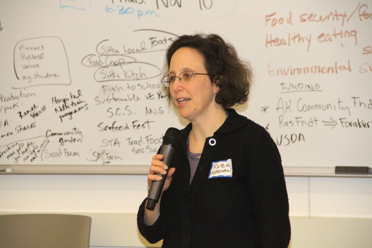 robinshermandiscussesfoodgroupcollaborationproject Published October 23, 2016 at 2700 × 1800 in Sitka Health Summit chooses two community wellness projects related to local food ← Previous Next →