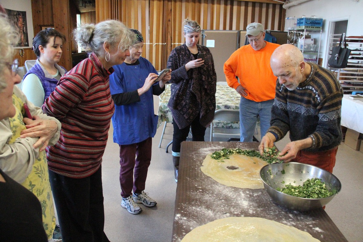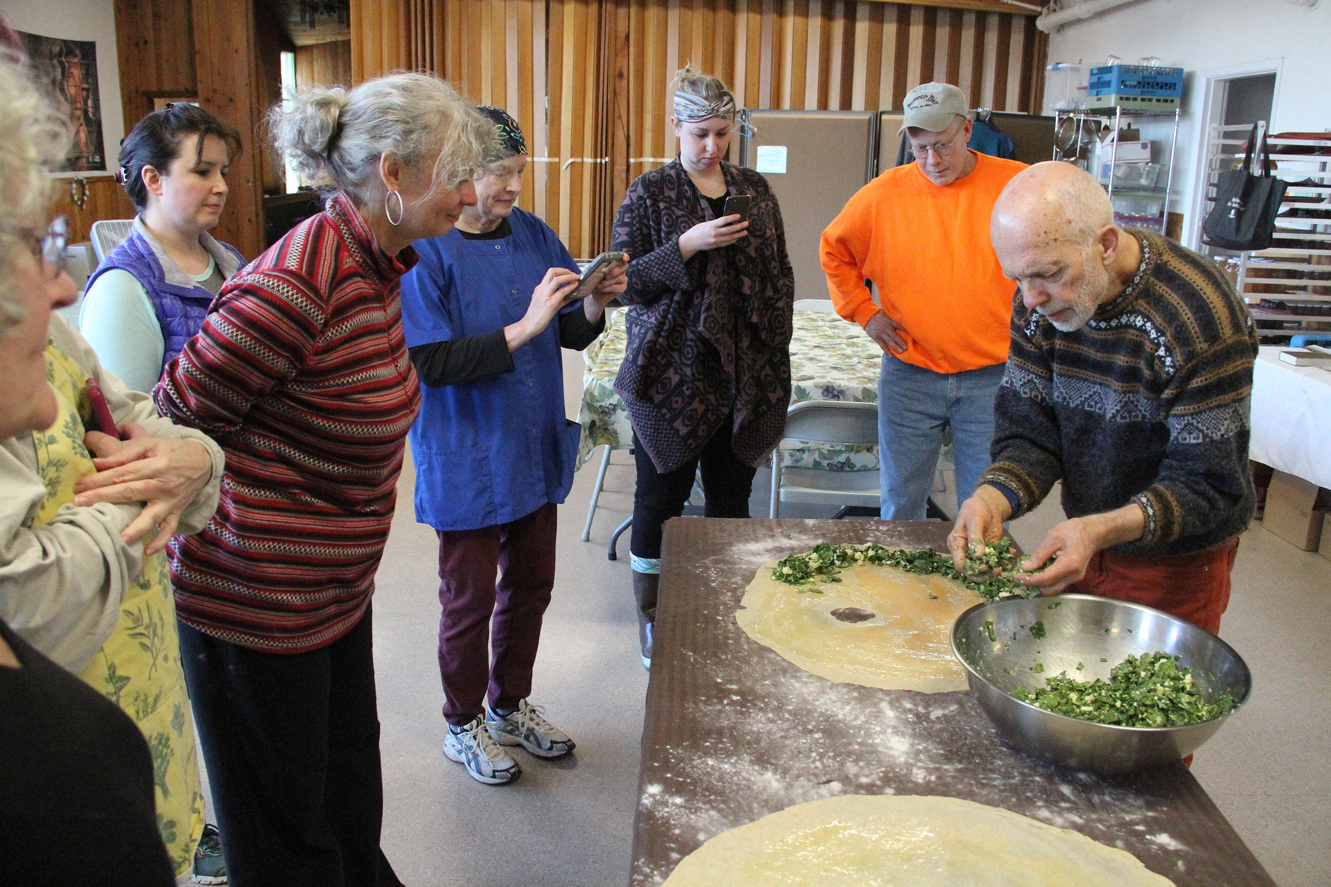 StudentsWatchSuatTuzlakPutSpinachFetaFillingAroundEdgesOfDough Published April 14, 2017 at 2700 × 1800 in Scenes from the Sitka Kitch’s Cooking Around The World series class on Austrian strudel ← Previous Next →