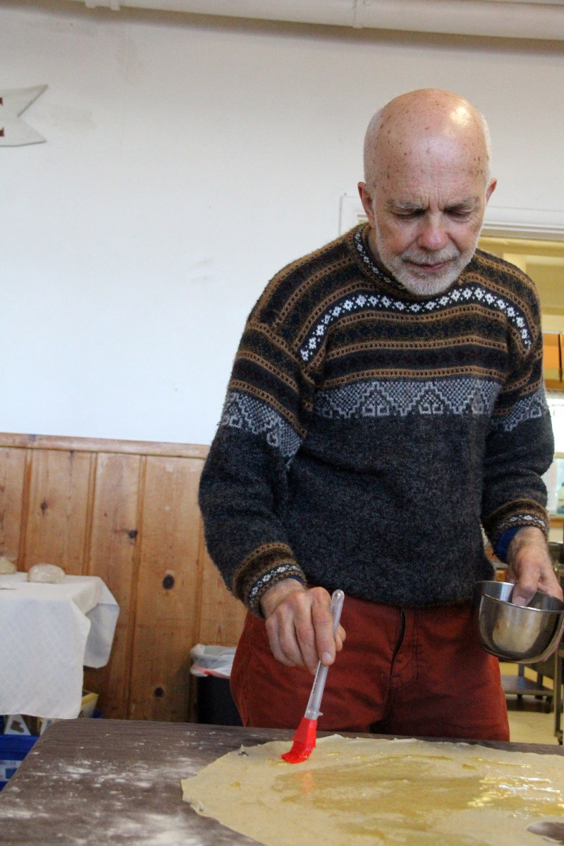 SuatTuzlakBrushesOliveOilAroundDough Published April 14, 2017 at 1800 × 2700 in Scenes from the Sitka Kitch’s Cooking Around The World series class on Austrian strudel ← Previous Next →